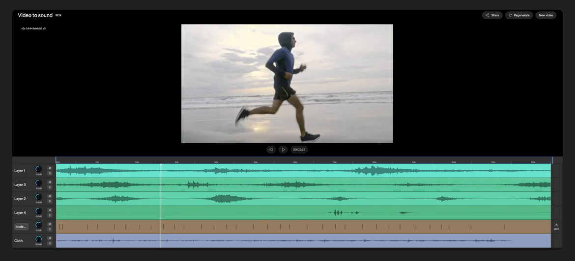 The update also introduces automatic cloth Foley. By analysing motion and changes in movement, Video to Sound applies context-aware cloth sounds that reflect subtle shifts, turns, and layered action in a single pass. Users can audition and balance individual layers in the browser before exporting them for use in a preferred DAW or NLE.
