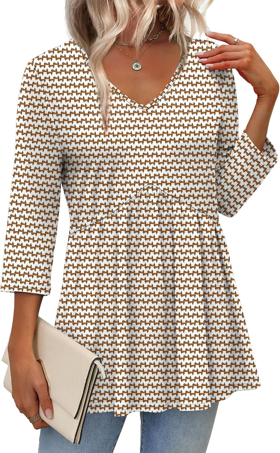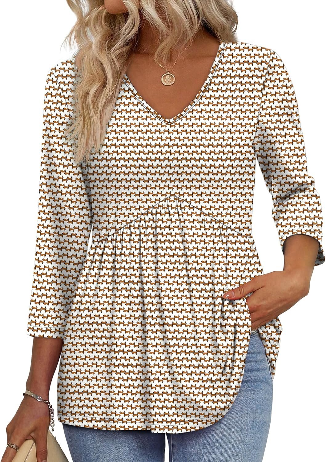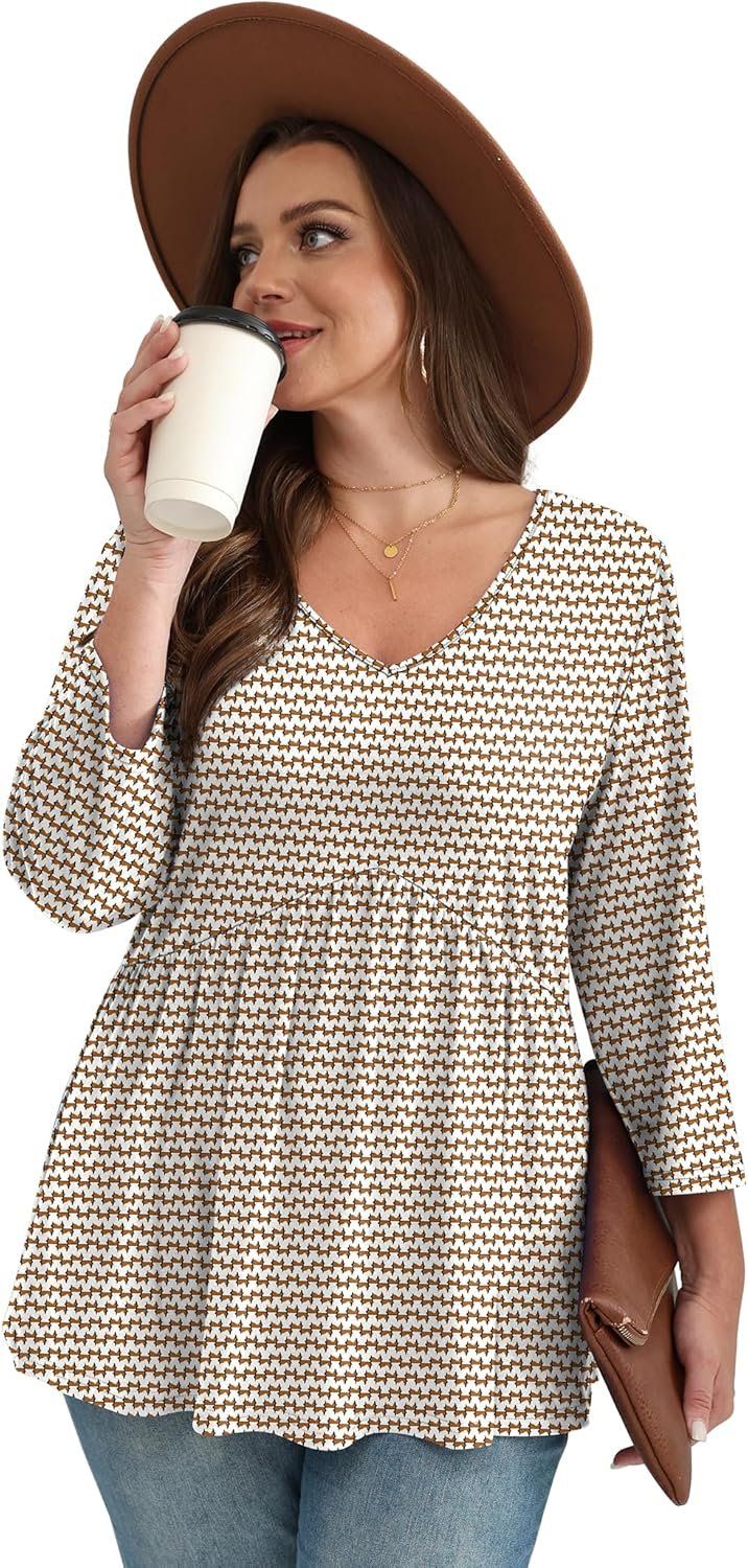 3/4 Length Sleeve Womens Tops 2025 Blouses for Women Dressy Casual Fashion Clothing V Neck Babydoll Tops Fall Outfits