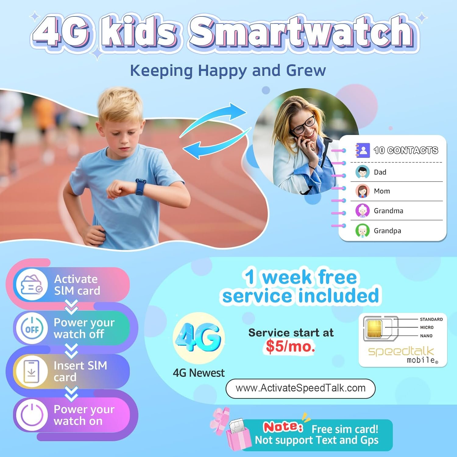 SIM Card Compatible Watch: This kids smartwatch is equipped to work with a SIM card. Simply activate it with SpeedTalk by following the provided instructions to enable calling functionality. The setup process is straightforward and does not require any complex app installations. (Please note: This watch does not support Text Messaging or GPS services).