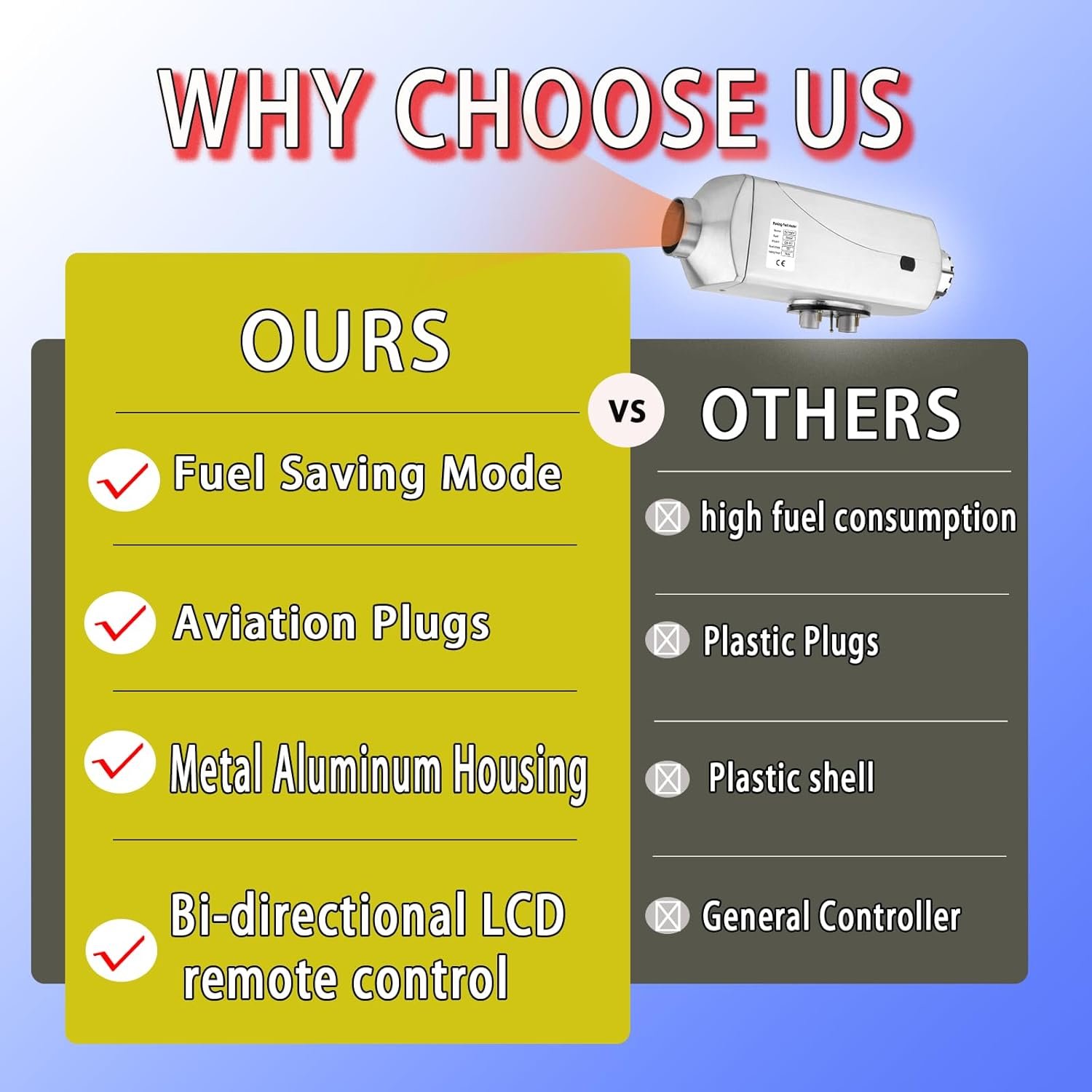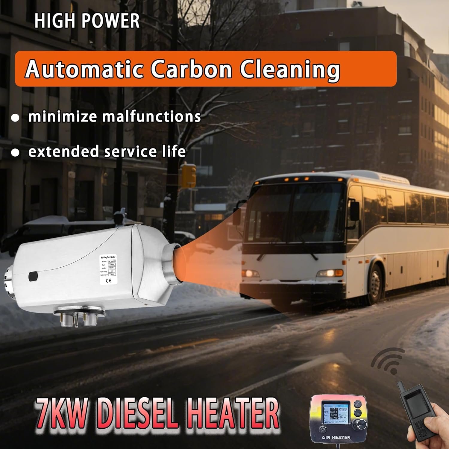 【Powerful 7kW Diesel Air Heater】 Experience robust heating with our 7000W diesel heater, designed as a high-efficiency diesel air heater for consistent warmth in trucks, RVs, and boats. This unit excels as a reliable parking heater, delivering 7000W of output to combat harsh winters, ensuring you stay cozy without compromising on performance. Unlike small diesel heaters, it provides superior coverage for larger spaces.