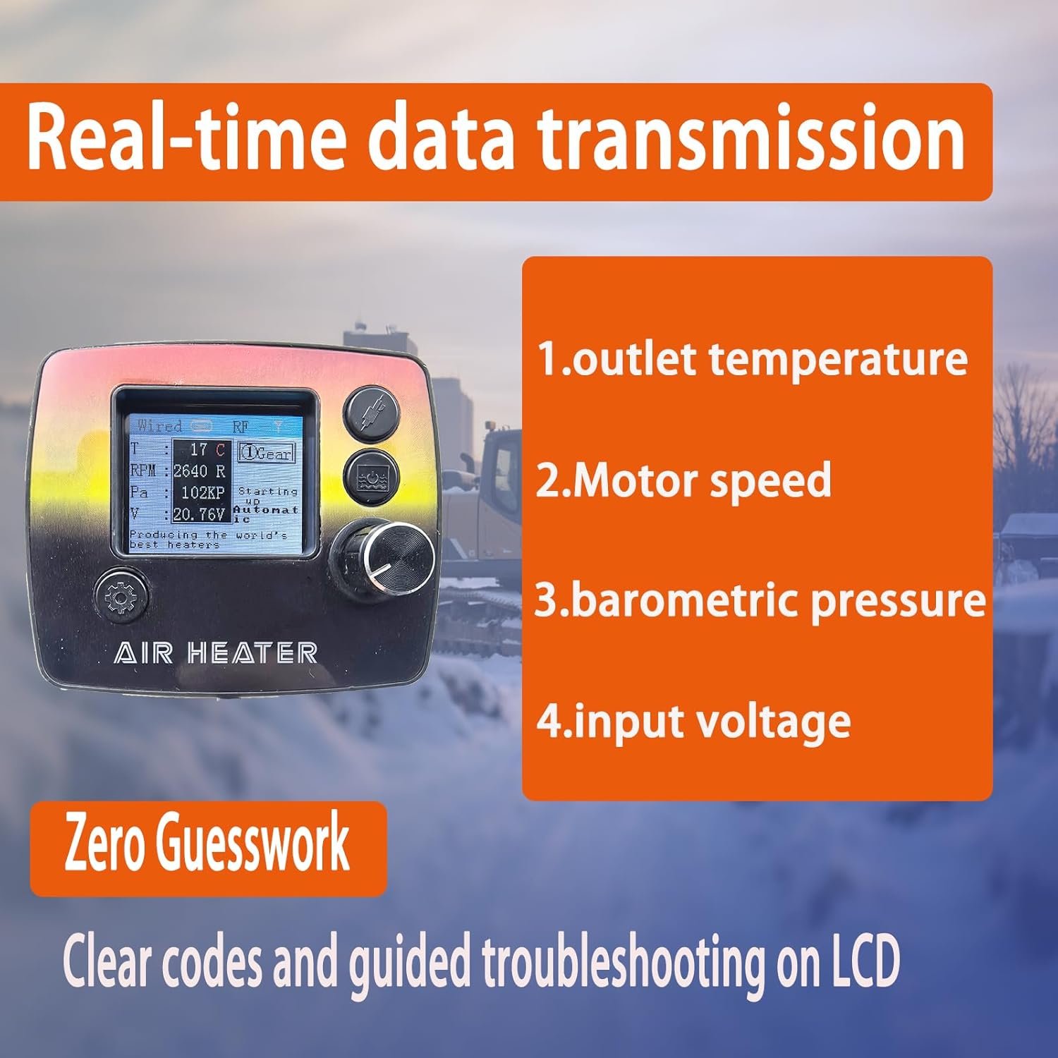 【Advanced LCD Display with ST32 Chip Control】 Stay in control with our intelligent system featuring a clear LCD screen and premium ST32 chip motherboard. This diesel heater offers real-time diagnostics and troubleshooting—if issues arise, the display instantly shows solutions, eliminating manual checks. It’s a standout feature in diesel heaters, making operation effortless and reliable for everyday use.