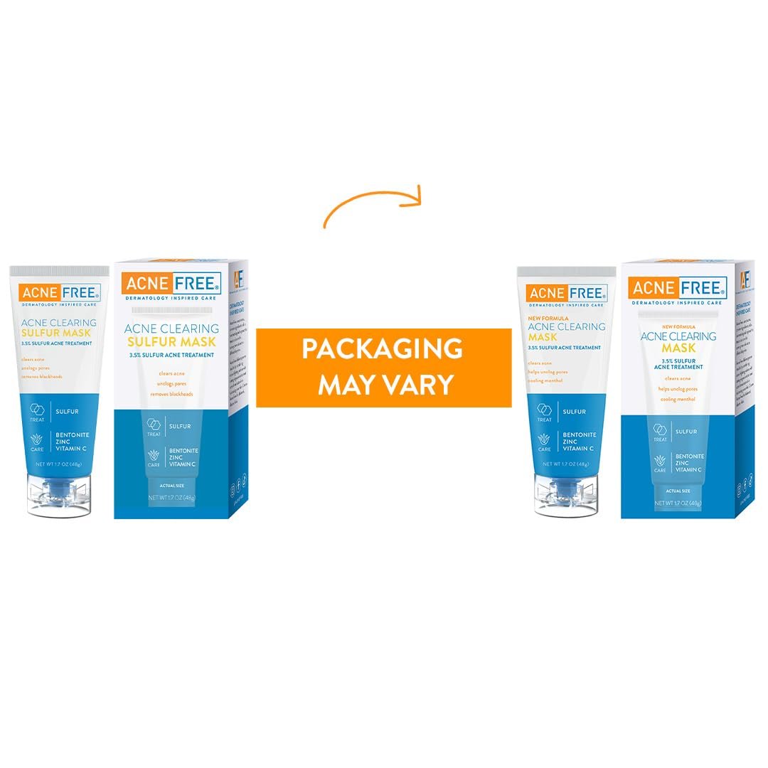 If you experience oily skin with acne, the AcneFree Therapeutic Sulfur Mask is the solution for you. This penetrating pore therapy soothes acne-inflamed skin and absorbs excess oils. This treatment is for acne or acne prone skin and also removes impurities, while redefining skin’s entire essence. You feel a cool facial tingle as the mixture massages your pores and revives your skin’s complexion. The secret is the Revolutionary Color-Signal Technology, which transforms the mask a blue tone once it’s completely absorbed and the treatment is complete. The process is easy and convenient to use, and helps to clear blackheads and whiteheads, as well as acne blemishes.AcneFree Product Details: Dimensions: 1.2 x 2.8 x 5.1 inches Weight: 2.72 ounces Supply: 60 days Acne Treatment Type: Face Mask For: Mild to Moderate Acne.