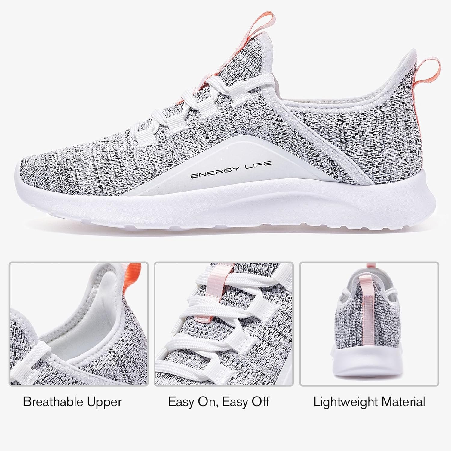 Customers find these walking shoes comfortable, lightweight, and true to size with ample toe room. They are easy to slip on and off, and customers appreciate their good quality for the price. The arch support receives mixed reviews – while some customers love it, others report very little arch support.