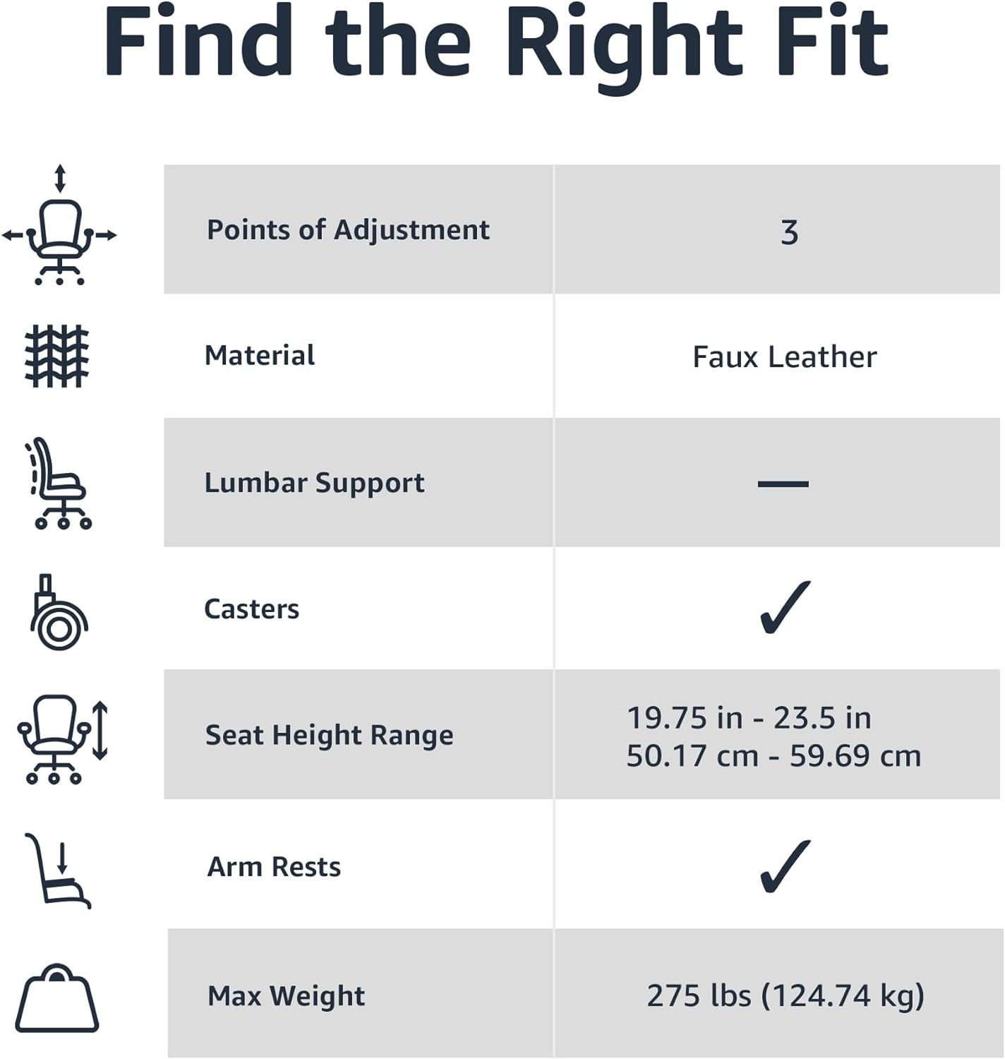 Amazon Basics Classic Puresoft PU Padded Mid-Back Height Adjustable Office Computer Desk Chair with Armrest, 26″D x 23.75″W x 42″H, Cream