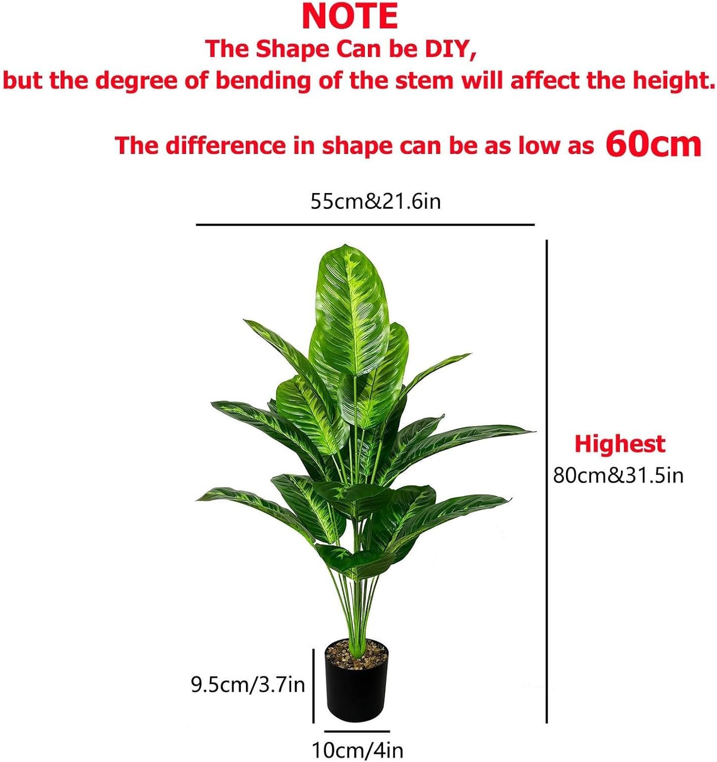 【Sturdy and Adjustable】We adopt split packaging. Its trunk inserted with soft metal wire, which can be bent as needed, adjust the branch to the shape you like, and experience the fun of DIY. When the fake potted plant is taken out of the box, simply bend and separate the branches, and insert the leaves into the branches to achieve the desired height and fullness.