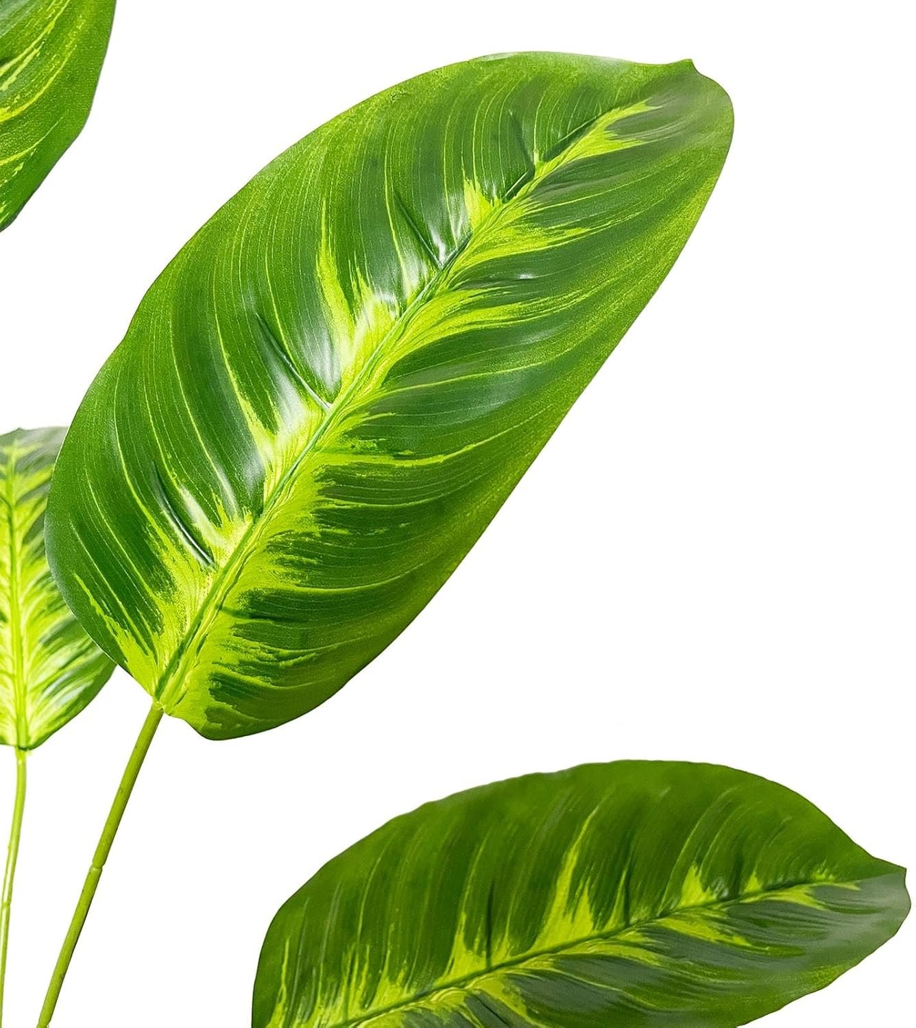 【Lifelike Appearance】Crafted carefully, our faux plants simulate the appearance of a real tree, looking as close to reality as possible, perfect for any room or office decor. Trunks adorned with large leaves, clearly textured leaf and variegated color makes this artificial tree a timeless home decor for all seasons and will definitely make you feel the existence of nature.