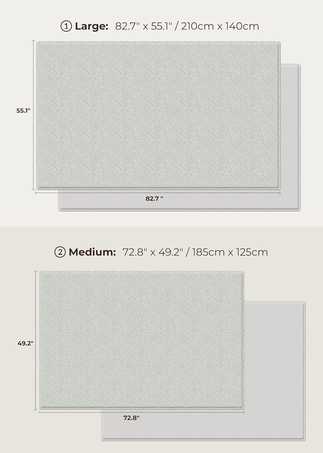 Thanks to their large size (comparable to a queen-sized mattress) and extra-cushiony texture, our playmats give them plenty of room to roll, sit, stand, and tumble so they can boldly keep exploring.