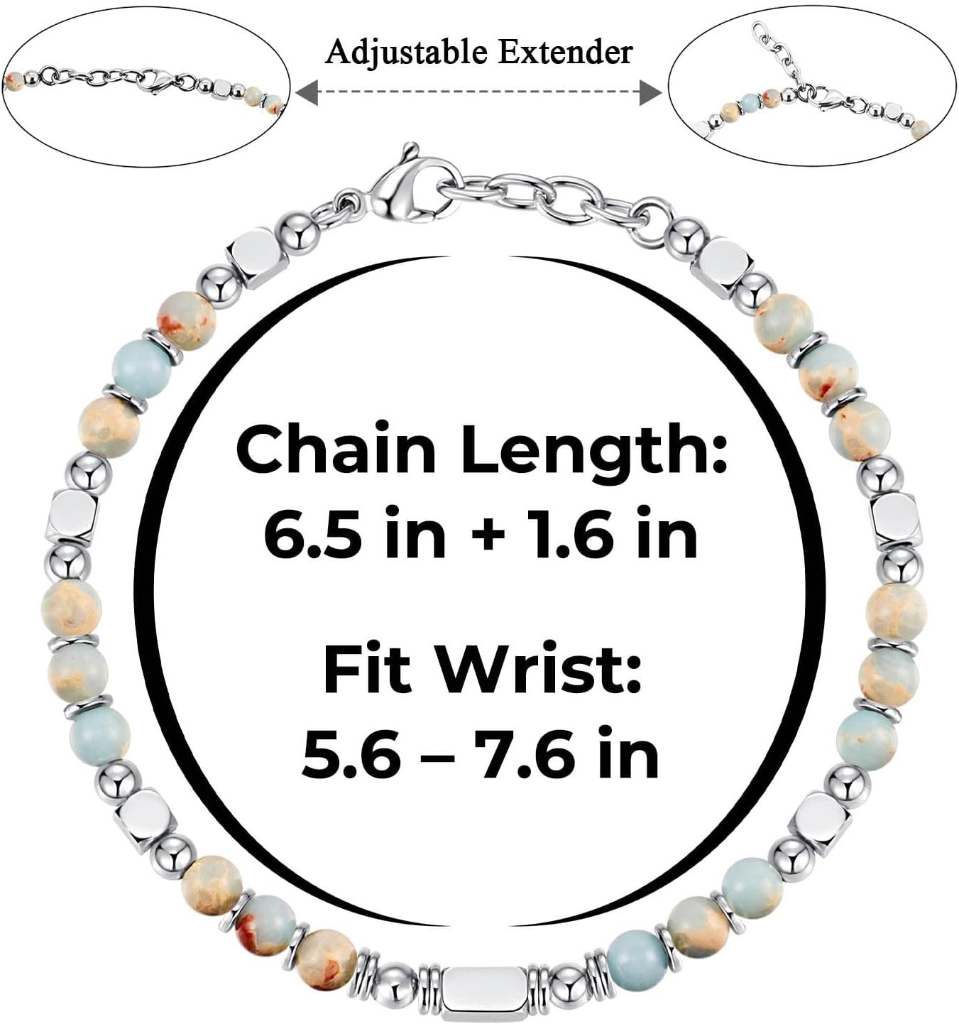 Natural stone and stainless steel bead which is nickel-free, lead-free, non-irritating, possess low density and light weight. We know how important this bracelet is to you which is why we make it with quality components for you to enjoy for a lifetime!