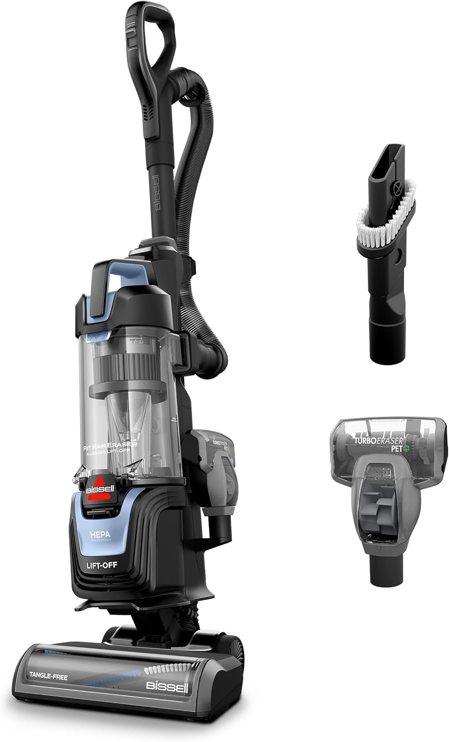 BISSELL® Pet Hair Eraser® Allergen Lift-Off® Vacuum is designed to tackle even the furriest messes with unbeatable suction vs the leading competitior*. Our products are made with pet owners in mind. The Lift-Off® detachable pod makes maneuvering throughout your home a breeze, reaching under low baseboards and high ceiling corners. Our HEPA Sealed Allergen System locks in dust allergens, keeping your air free of dust. The Tangle-Free Brush Roll eliminates hair wrap, and Scatter-Free Technology takes the hassle out of vacuuming. Every purchase makes it possible for BISSELL to continue our support of BISSELL Pet Foundation® and its mission of saving pets in need. Since 2011, BISSELL has donated over $26 million in support of BISSELL Pet Foundation®. When you purchase a BISSELL® product, you help save pets, too. Our products are engineered to clean even the toughest messes so pets can stay at home and out of shelters. *vs. Shark NV360 based on ASTM F558 sealed suction at the hose **tested per ASTM F1977 at 0.3 microns