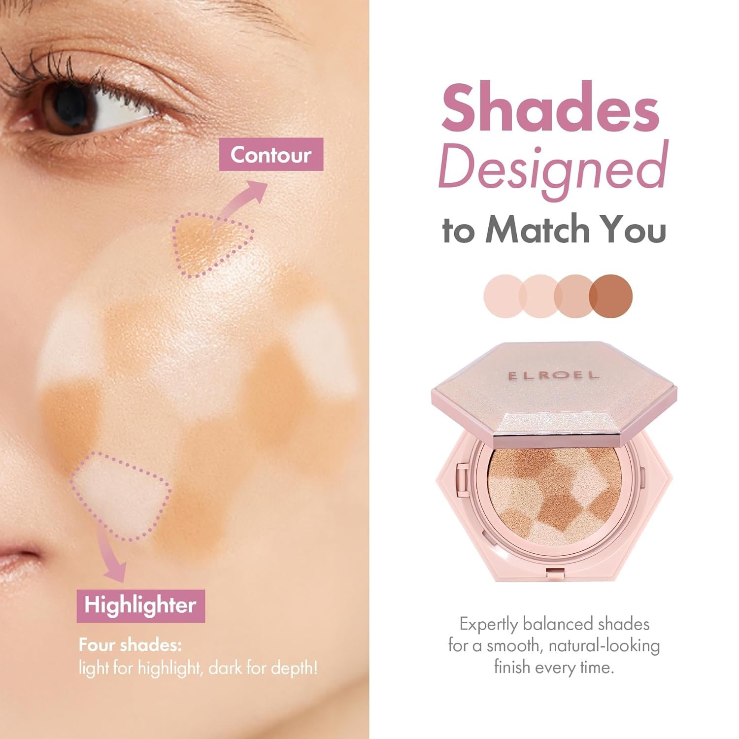 4-IN-1 MAKEUP CUSHION. Get ready for all-day beauty! ELROEL Blending Cushion HD combines tone-up cream, concealer, and foundation in one compact. With 4 perfectly tailored, precisely designed shades, it delivers a professional finish that blurs uneven tone and texture for a fresh, lasting look.
