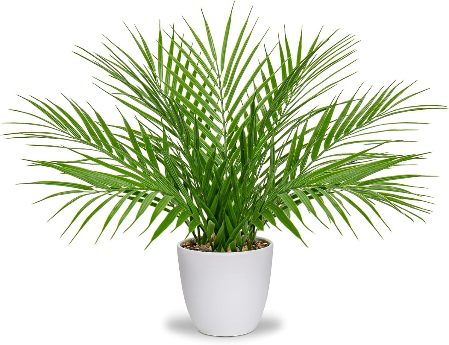 palmpalm Fake Palm Plant 15’’ Artificial Palm Plant in White Pot