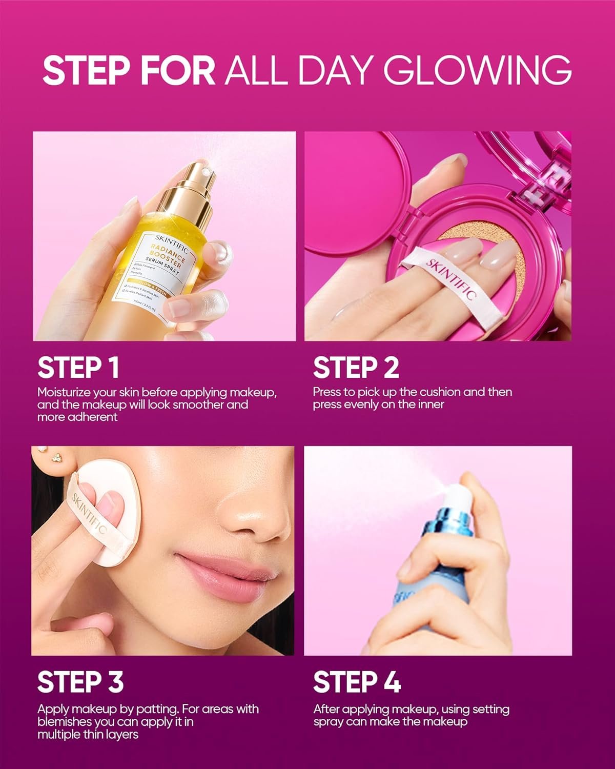 [ALL-DAY WEAR] Enriched with Resveratrol and Vitamin E, this formula features dual antioxidant ingredients that protect the skin barrier and effectively prevent oxidation. It also uses a four-layer film-forming technology to ensure the makeup stays fresh for up to 10 hours.