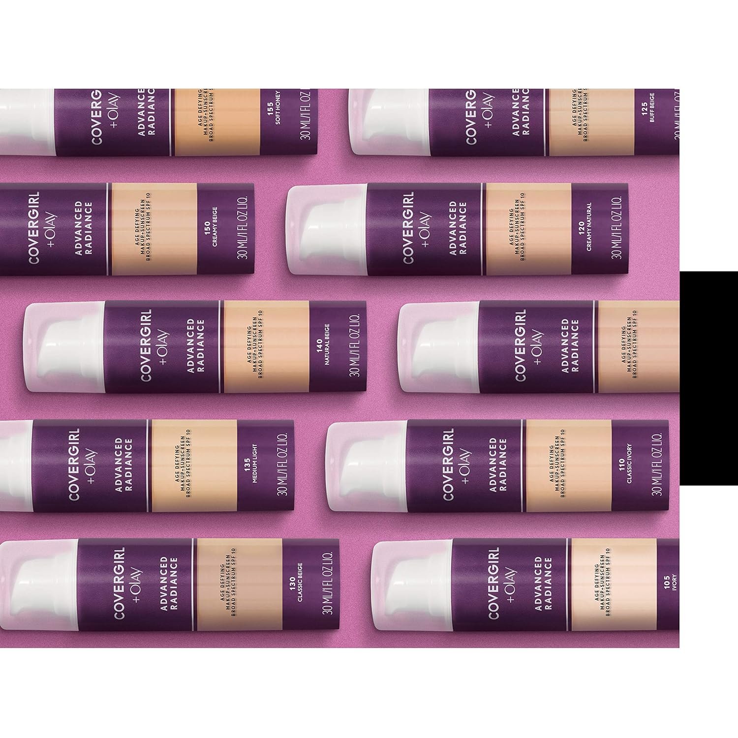 Contains one, 1 oz. bottle of COVERGIRL Advanced Radiance Age Defying Foundation in Classic Ivory. This liquid foundation is safe for sensitive skin, reducing the appearance of fine lines & wrinkles with a radiant finish. Light to deep shades available