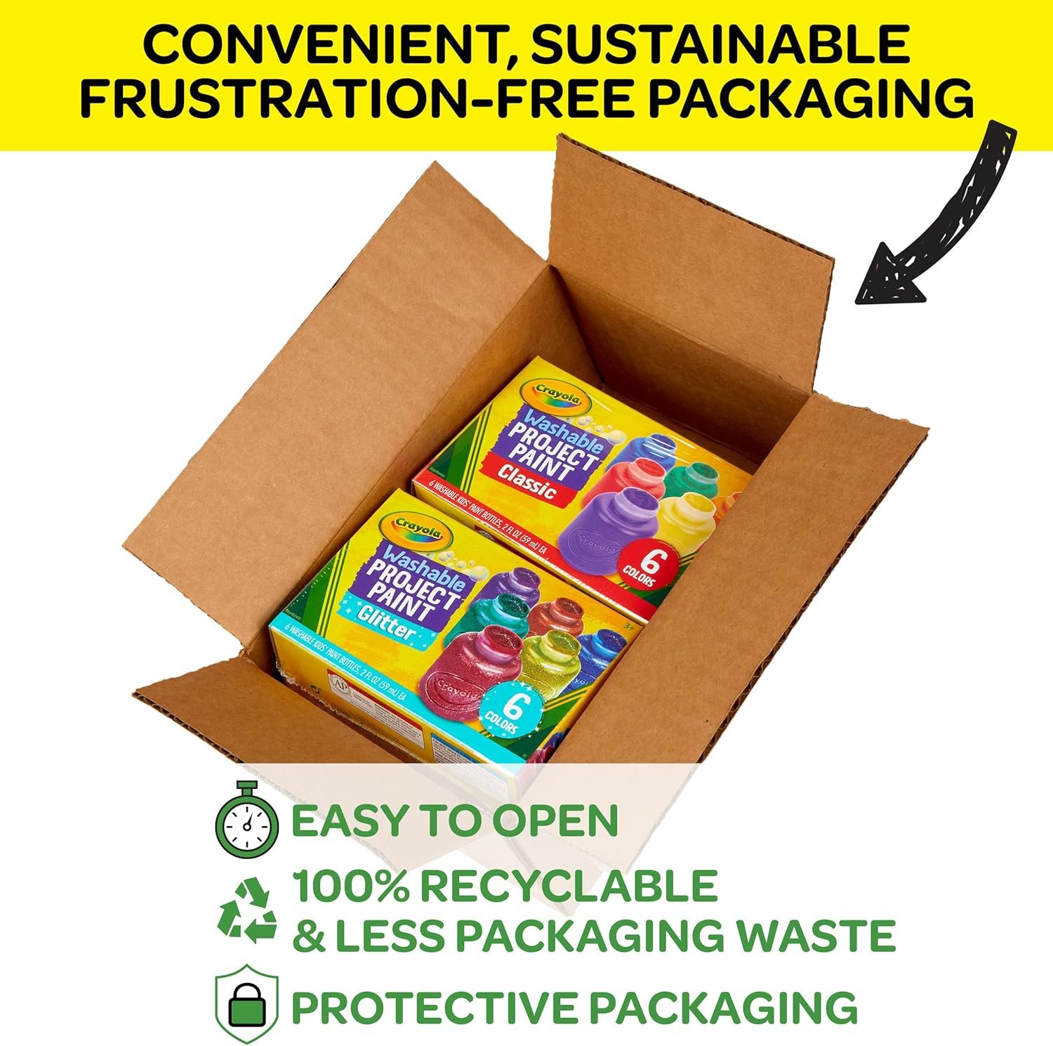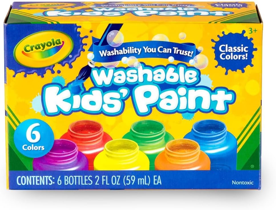 CRAYOLA PAINT SET FOR KIDS: This Amazon Exclusive collection features Crayola Washable Paint for kids in 6 Classic Colors and 6 Glitter Paint Colors.