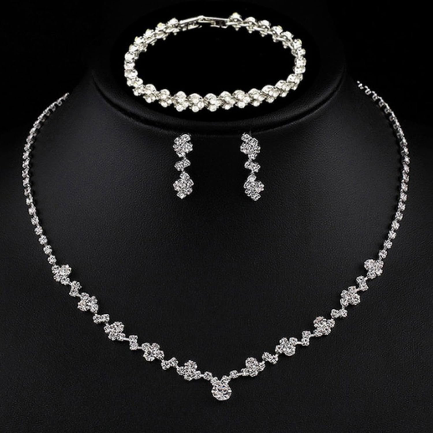 This Wedding Jewelry Set includes Shiny Rhinestone Crystal Necklace, Earrings, and Bracelets.Wearing This Kind of Jewelry Will Make You More Eye-Catching.