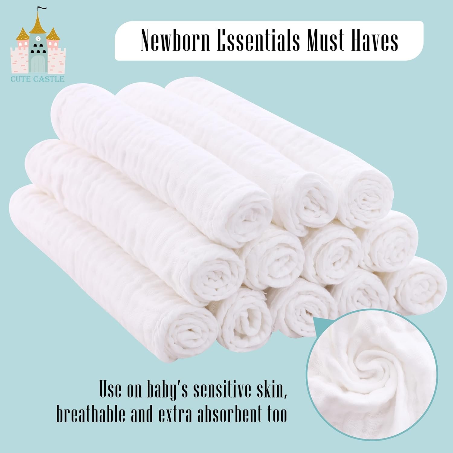 【PACKAGE CONTENT】 Baby Essentials Must-Have – 12 pieces muslin burp cloths, 20 x 10 inches.