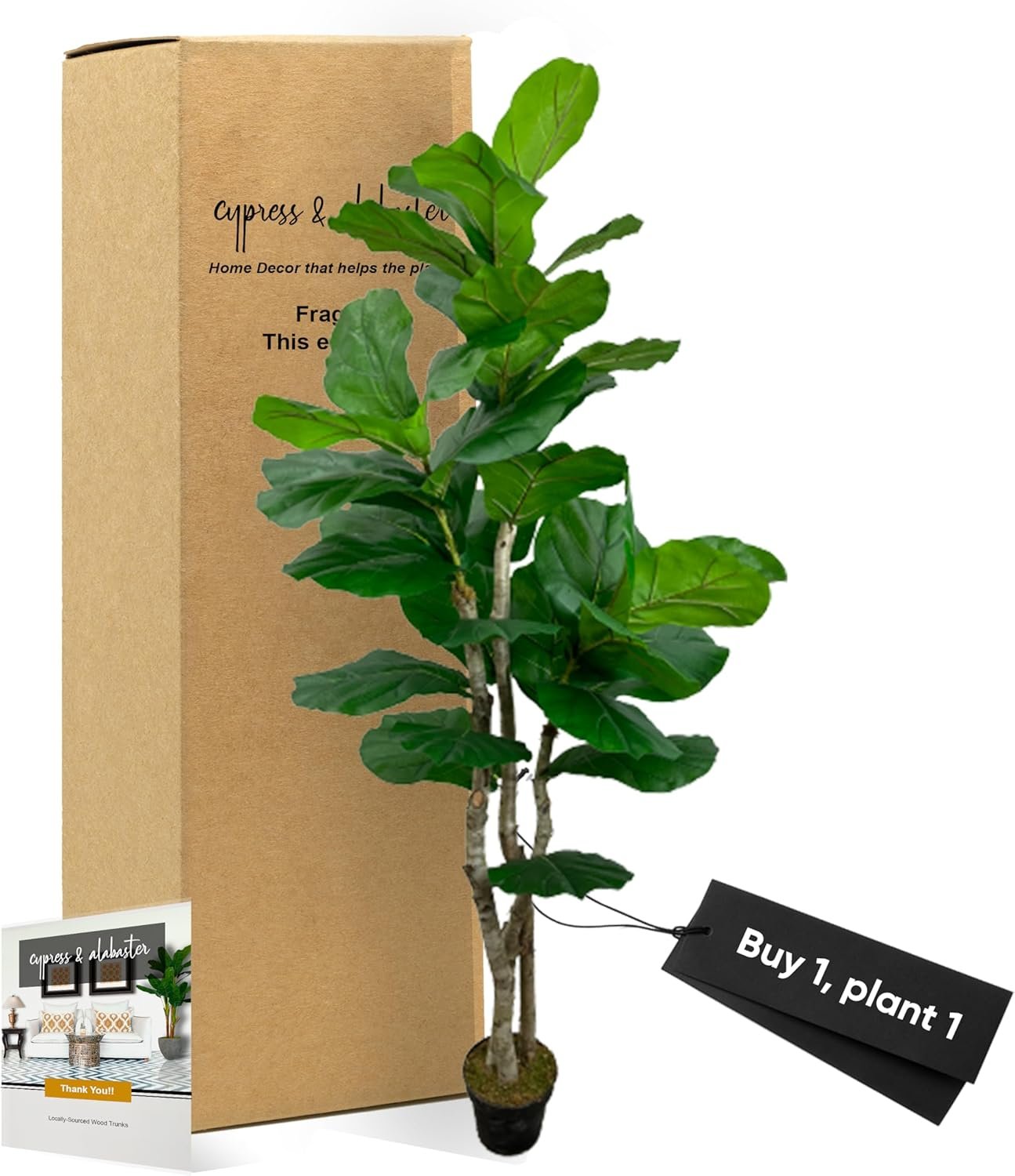 Cypress & Alabaster was founded on the belief that creating a welcoming, healthy environment shouldn’t harm our planet. Creating the first US-based, hand-crafted artificial trees made with real moss accents and locally-sourced, ethically-harvested real wood trunks, we replace fake plastic trunks that contribute to landfills. And we bring a more authentic, natural beauty to your home or office spaces while reforesting the US National forest by planting a real tree for each one you buy!