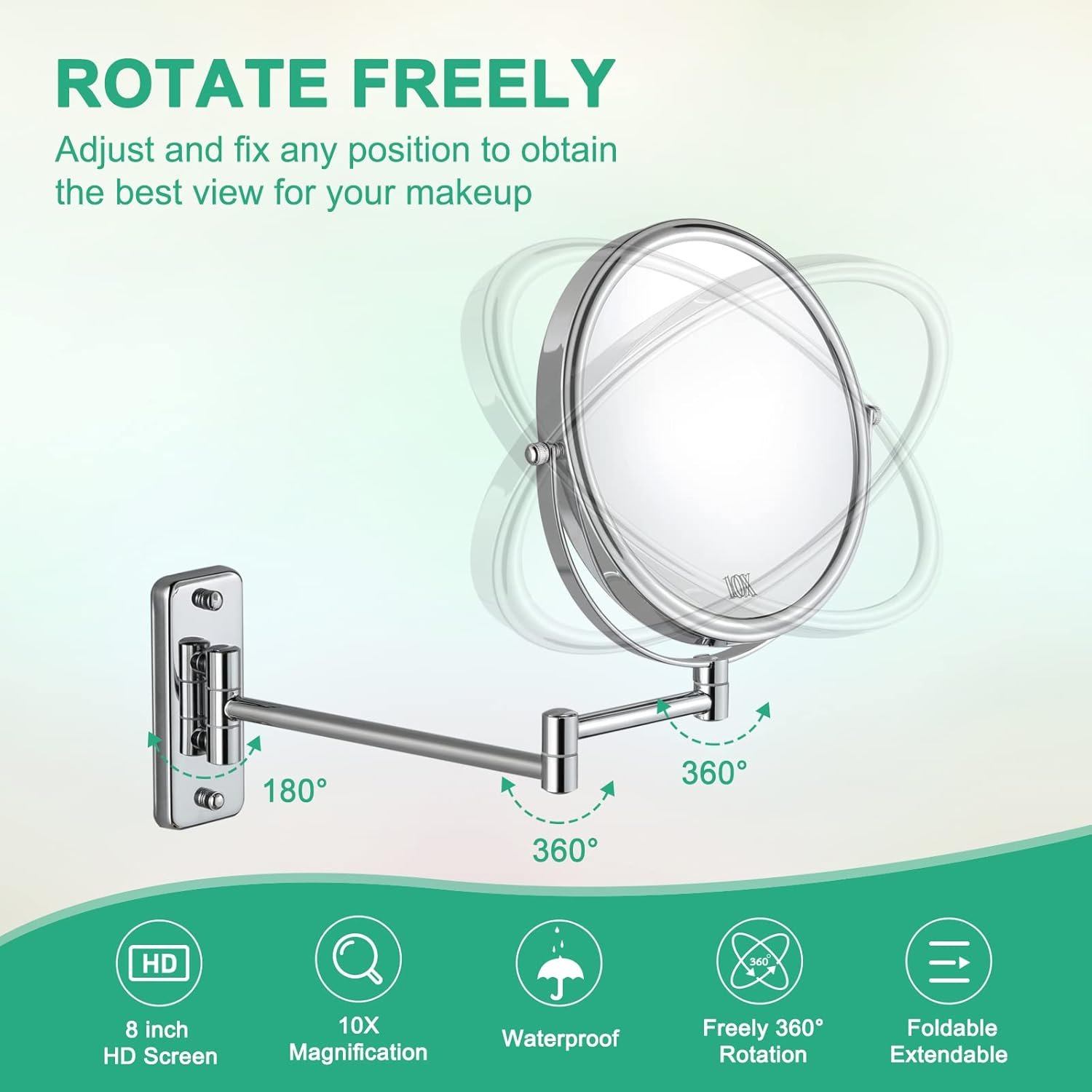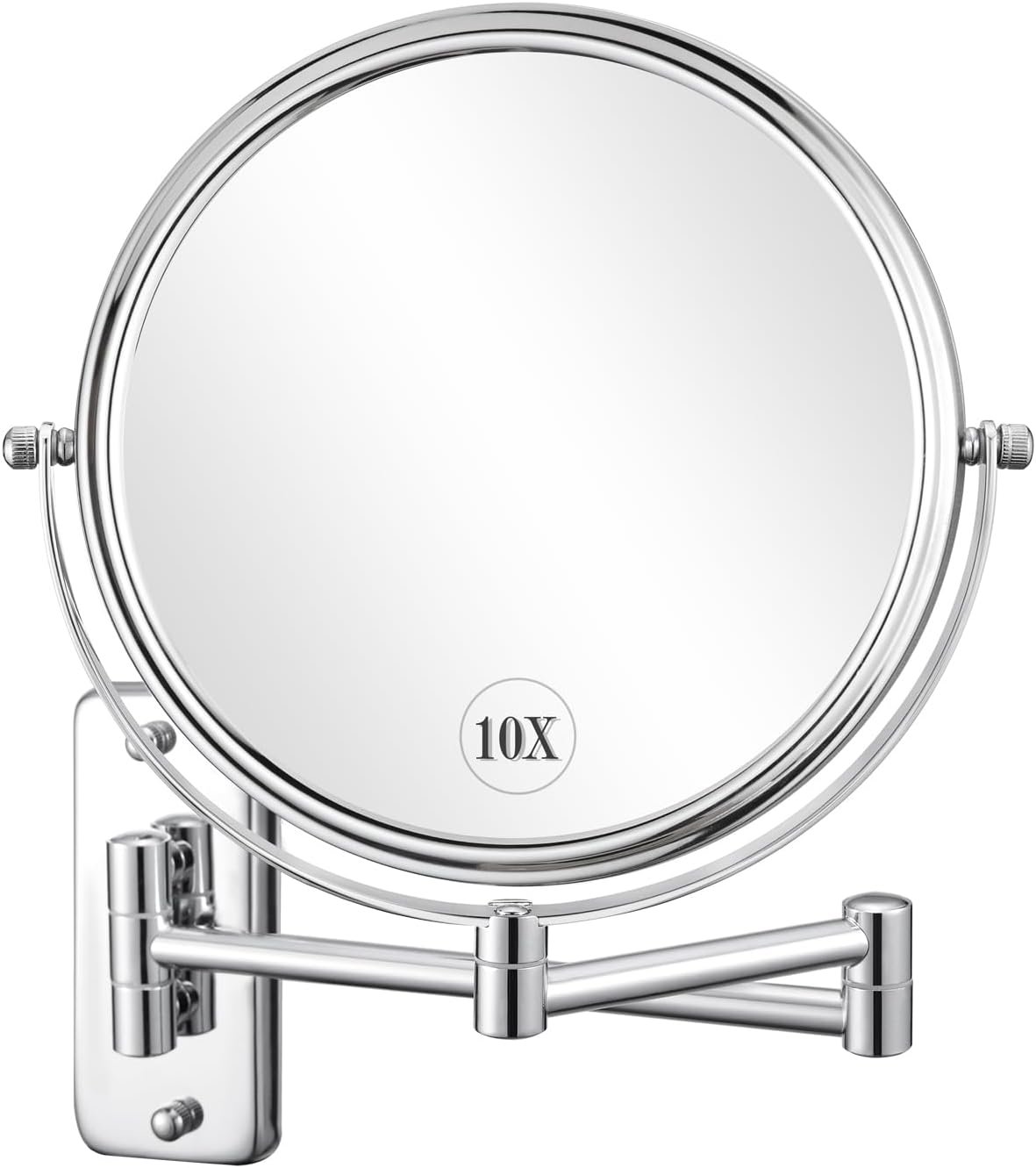 DECLUTTR 8 Inch Wall Mounted Magnifying Mirror with 10x Magnification, Double Sided Vanity Makeup Mirror for Bathroom, Chrome Finished