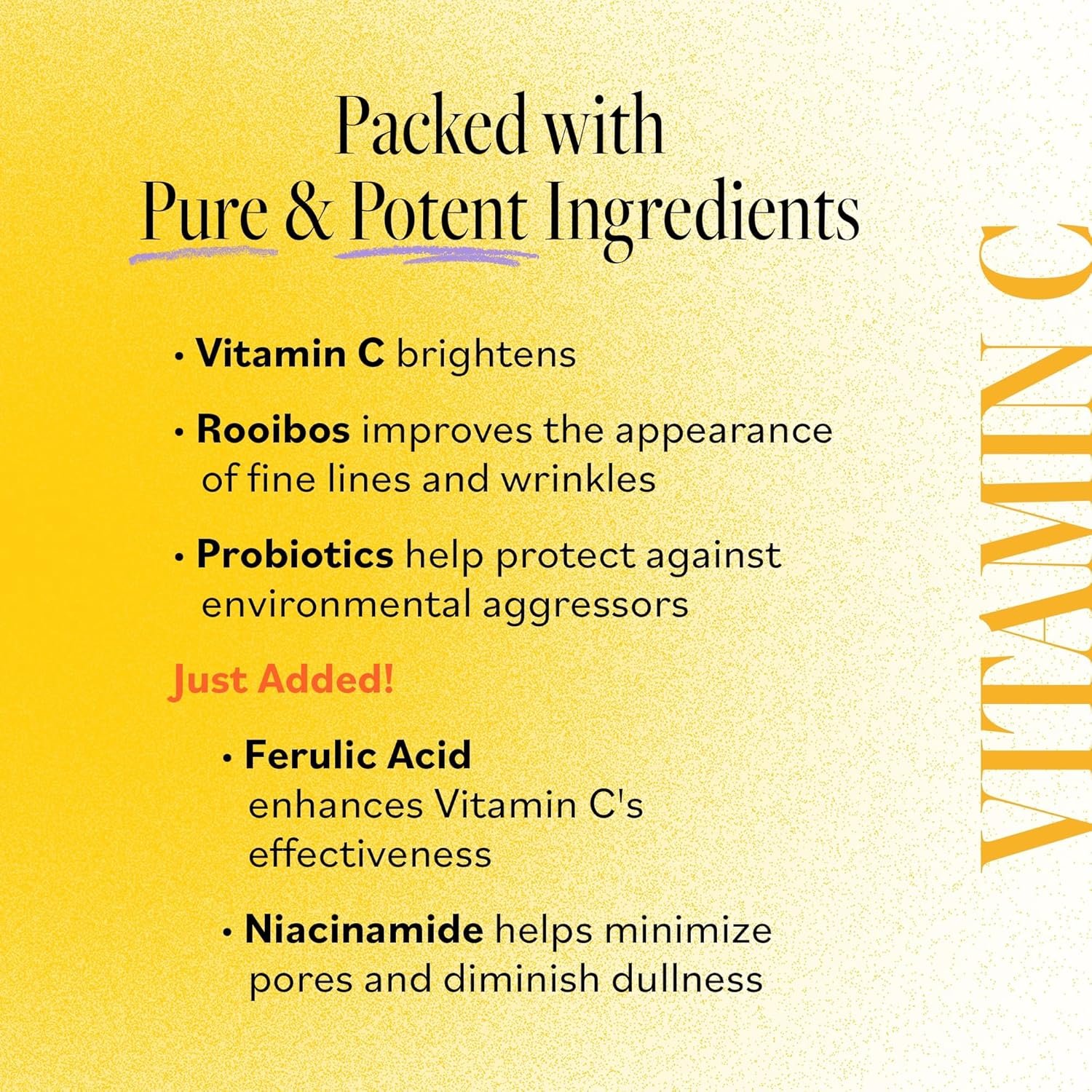 ALL NATURAL FORMULA: Packed full of powerful natural ingredients: Vitamin C has skin brightening and anti-aging properties; Probiotics protect skin from environmental stressors; and Rooibos reduces the appearance of line and wrinkles
