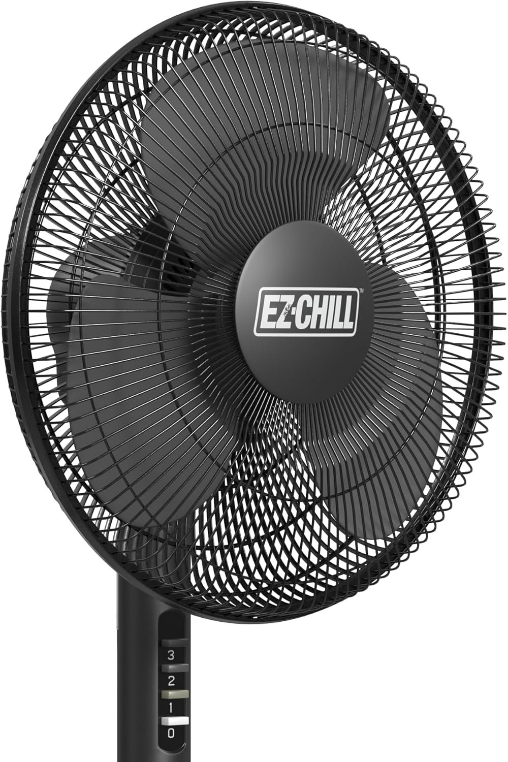 EZ-CHILL 16” Oscillating Pedestal Fan, 3-speed Options, 90-Degree Oscillating Head, Adjustable Height and Tilt, Powerful Air Flow, Black, MTFS-16B-BLK