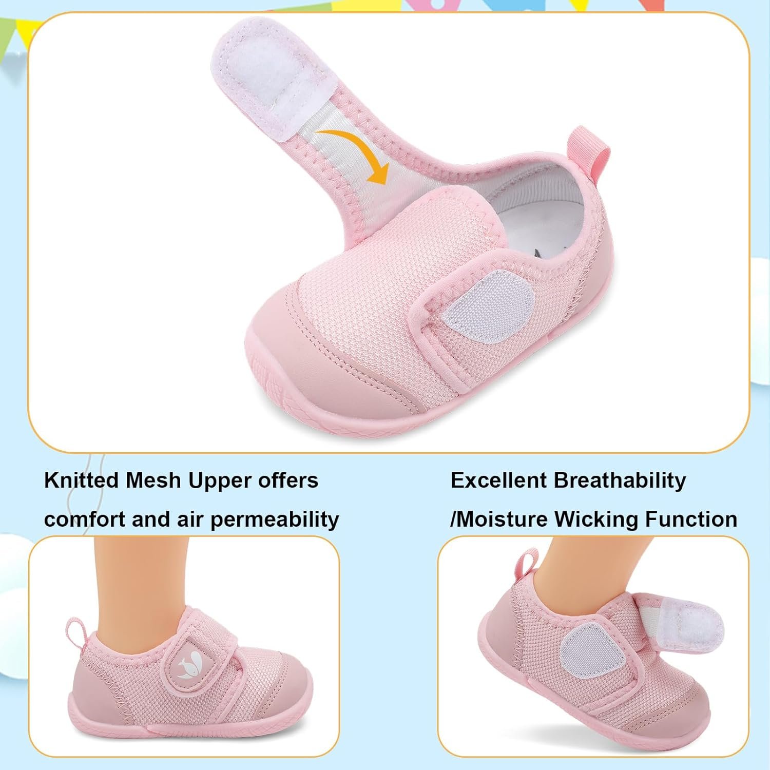 FEETCITY Baby First Walking Shoes Boys Girls Infant Sneakers Crib Shoes Breathable Lightweight Slip On Shoes