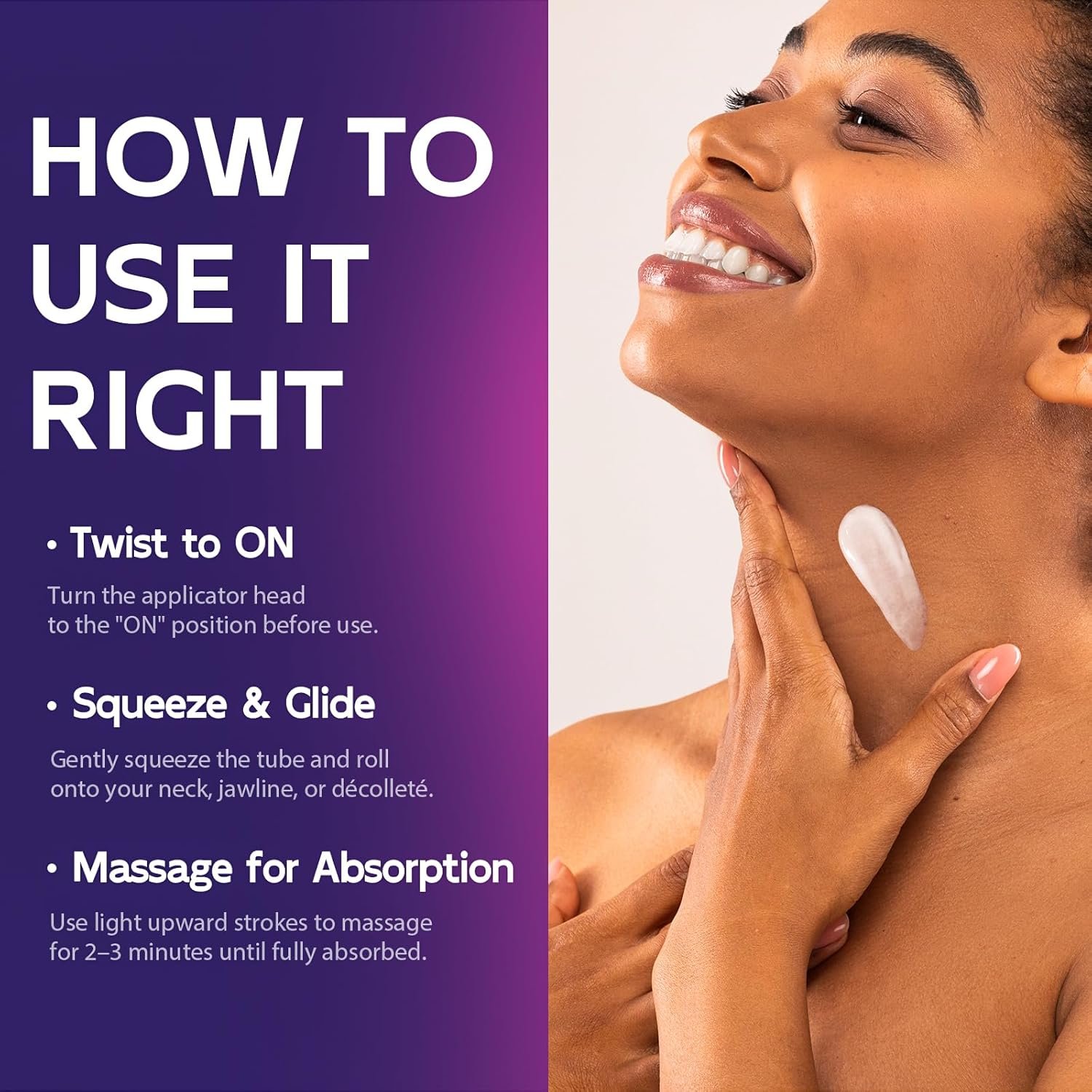 BUILT-IN ROLLER FOR EVEN APPLICATION: The ergonomic roller design features raised nodes to evenly distribute the cream and enhance absorption. Promotes circulation and supports a deeper tighten and lift effect—ideal for daily neck wrinkle cream use