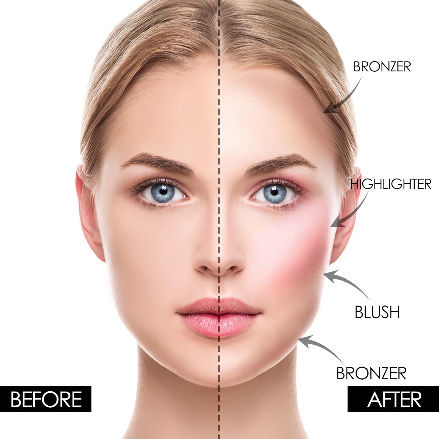 【WATERPROOF & LONG-LASTING】The blush highlighter powders have high pigments.In addition, it is waterproof, sweatproof and not easy to smudge. So the cheek powder can last a long time on your face.Shape, outline and highlight your best facial features.