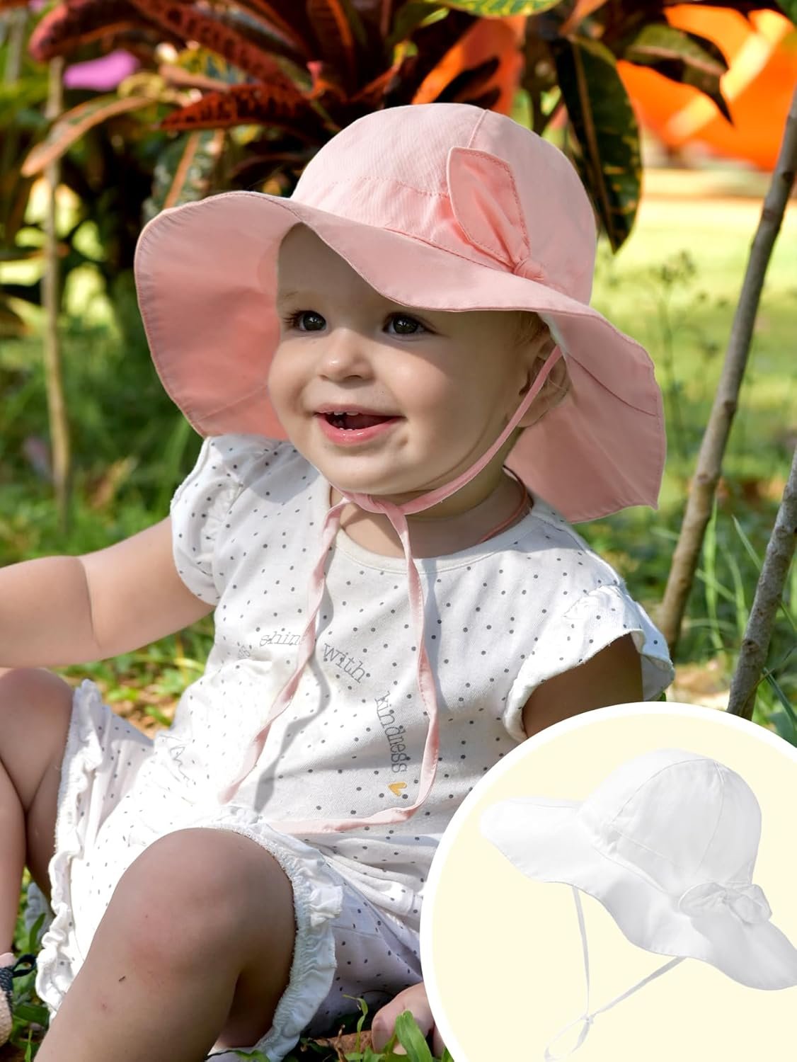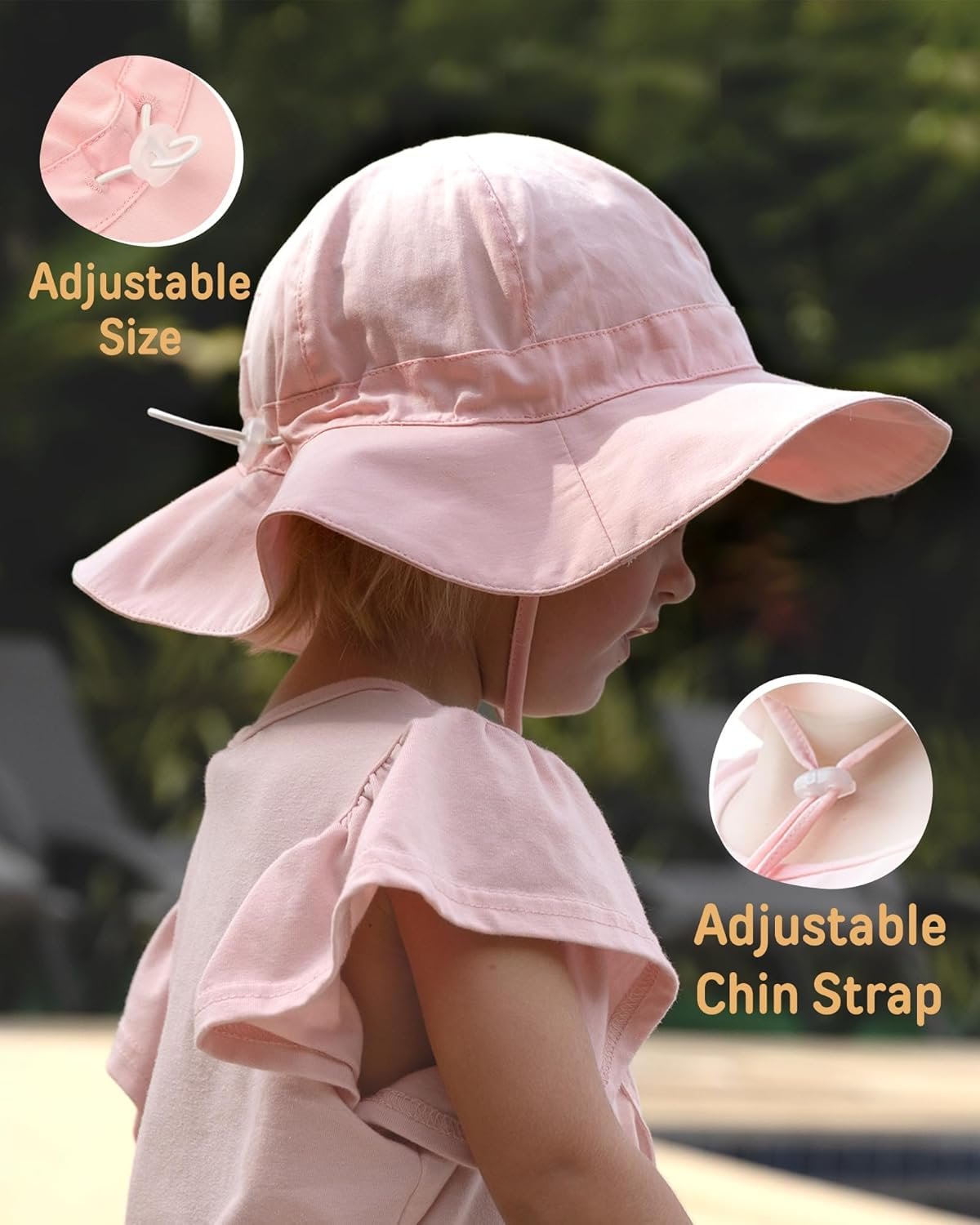 Customers find this sun hat cute and well-made, with adjustable straps that help secure it to the child’s head. The hat provides good sun protection, stopping rays from entering the eyes, and fits various head sizes comfortably. Customers appreciate its lightweight design and consider it perfect for summer use.