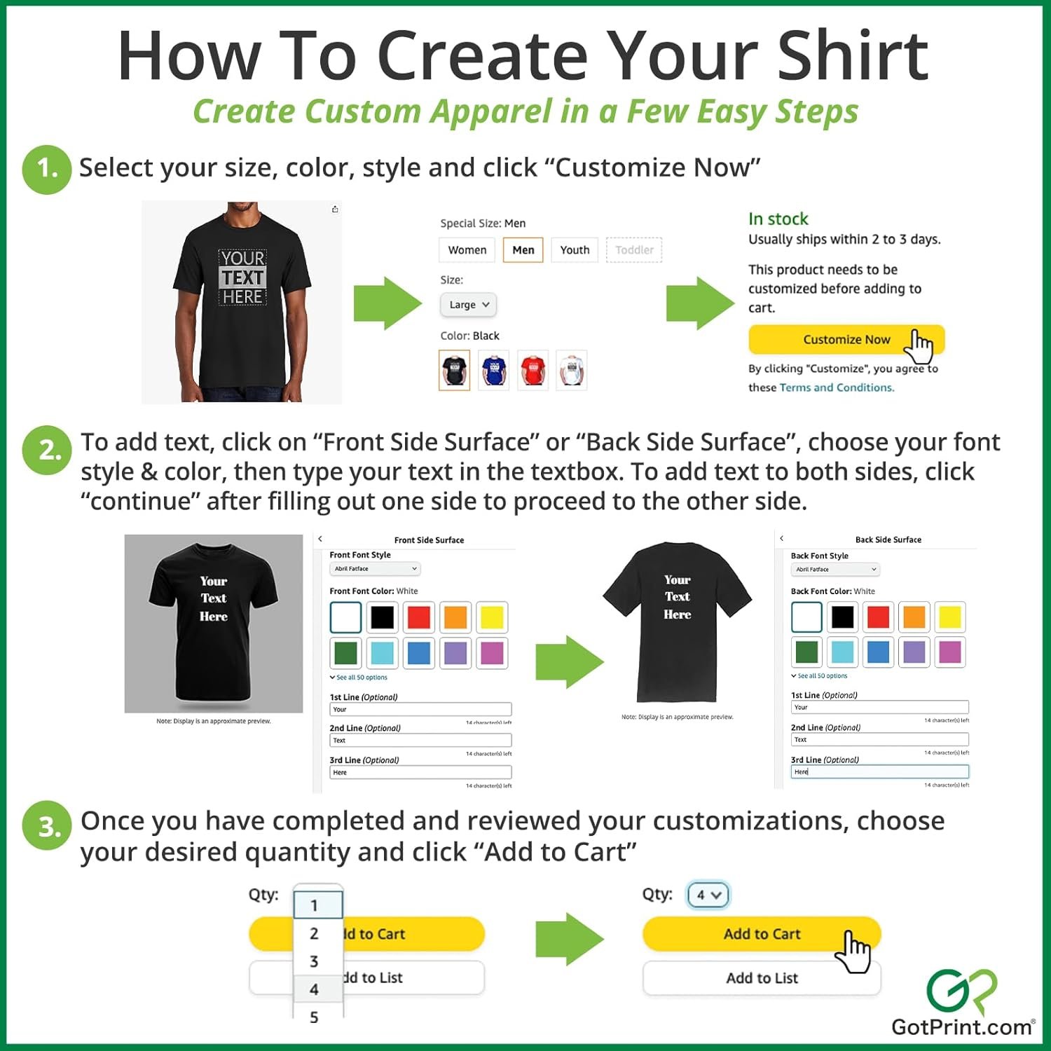 GotPrint Custom Shirt for Men, Women, Add Your Own Text Personalized T Shirts, Customizable Shirt Front/Back Soft Graphic Tee