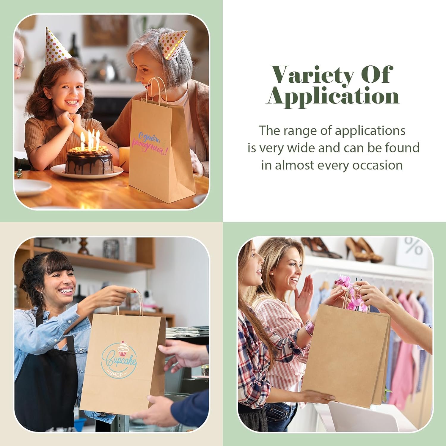 RECYCLABLE – Halulu kraft paper brown bags are made of premium recyclable kraft paper. They are durable, and reusable. Great for giving gifts or retail use. Great for packing groceries, merchandise, or takeout meals. These kraft paper bags are not waterproof and do not have pe film coating. Our kraft paper bags are recyclable, compostable, and a great alternative to plastic bags.