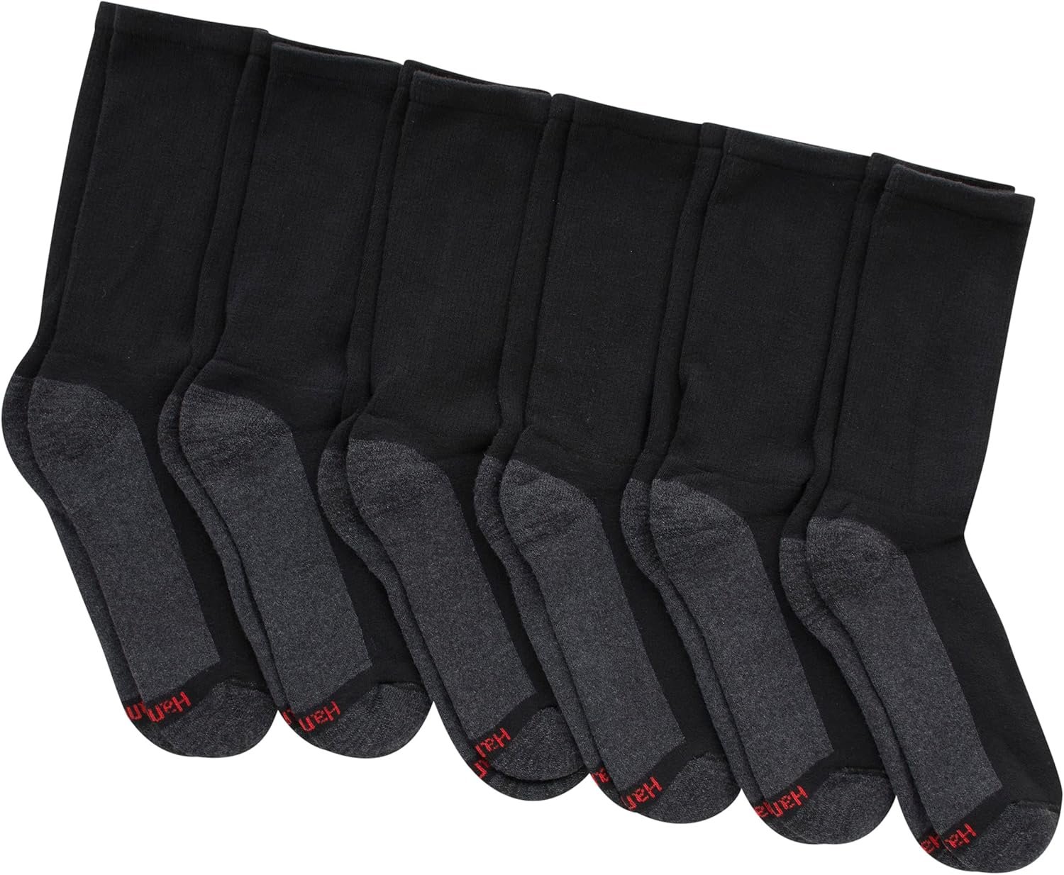 For sports or everyday wear, you’ll appreciate the comfort and construction of Hanes® Max Cushion crew socks. These soft but Double Tough classic crew socks are made to last with a reinforced heel and toe, all the while cradling your foot with extra cushioning you’ll feel with every step. These basic crew socks for men are made with Hanes’ high-tech features, including Cool Comfort® fabric that wicks away moisture to keep feet cool and dry, and FreshIQ™ advanced odor-fighting technology that attacks odor-causing bacteria to keep feet smelling fresh. Smooth toe seams enhance comfort even more, and a touch of spandex in the fiber blend assures a stay-in-place fit. Stock up on these made-to-last crew socks and fill your sock drawer with comfort.