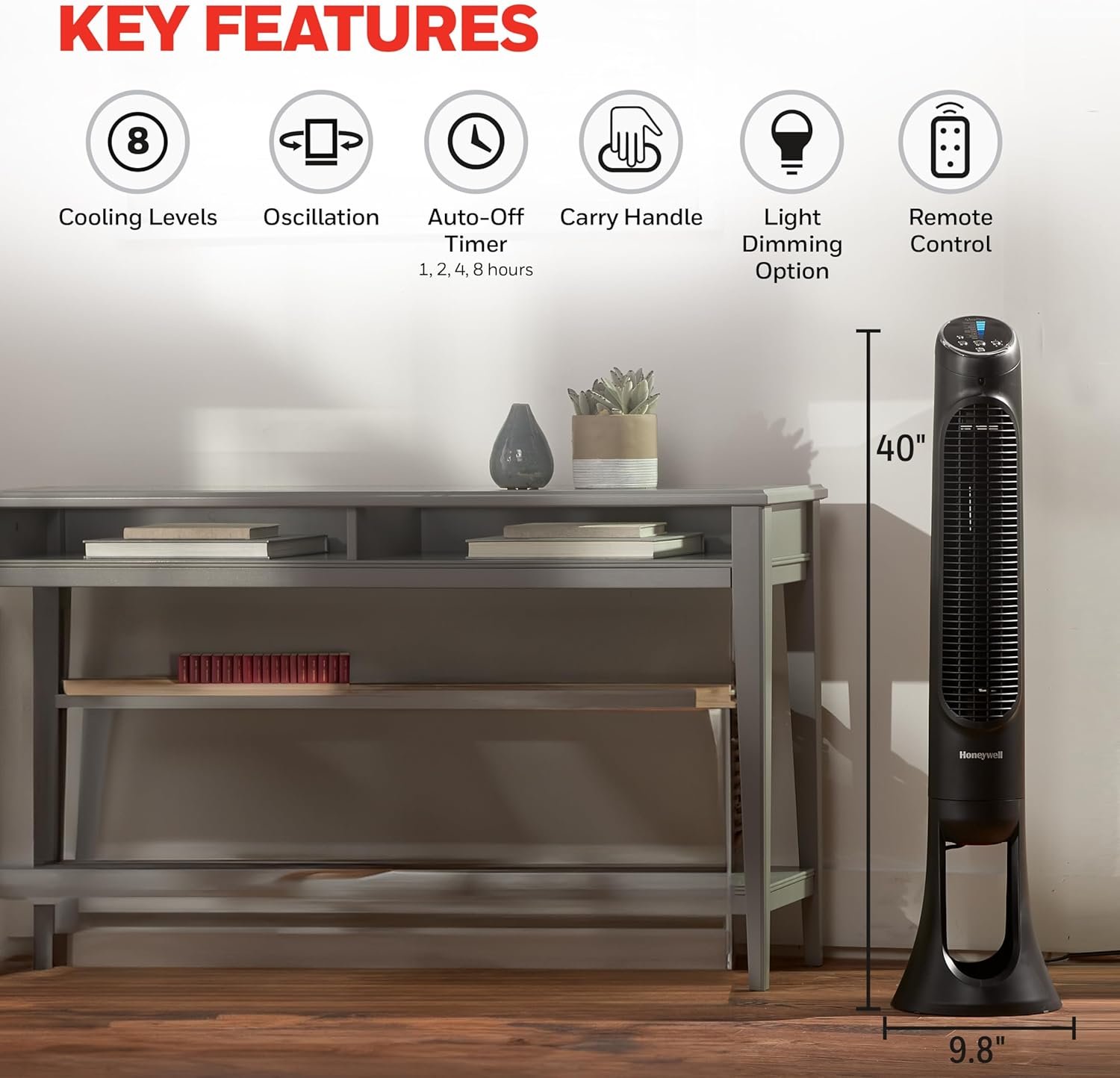 Honeywell QuietSet Whole Room Tower Fan-Black, Oscillating Tower Fan with Remote, HYF290B