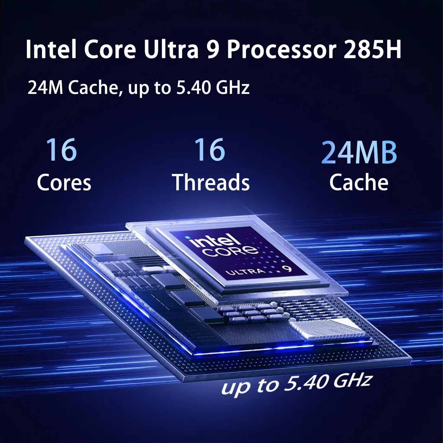 CPU: Intel Core Ultra 9 285H (16 Cores, 16 Threads, 24MB L3 Cache, Base Frequency at 2.7GHz, Up to 5.4GHz at Max Turbo Frequency)