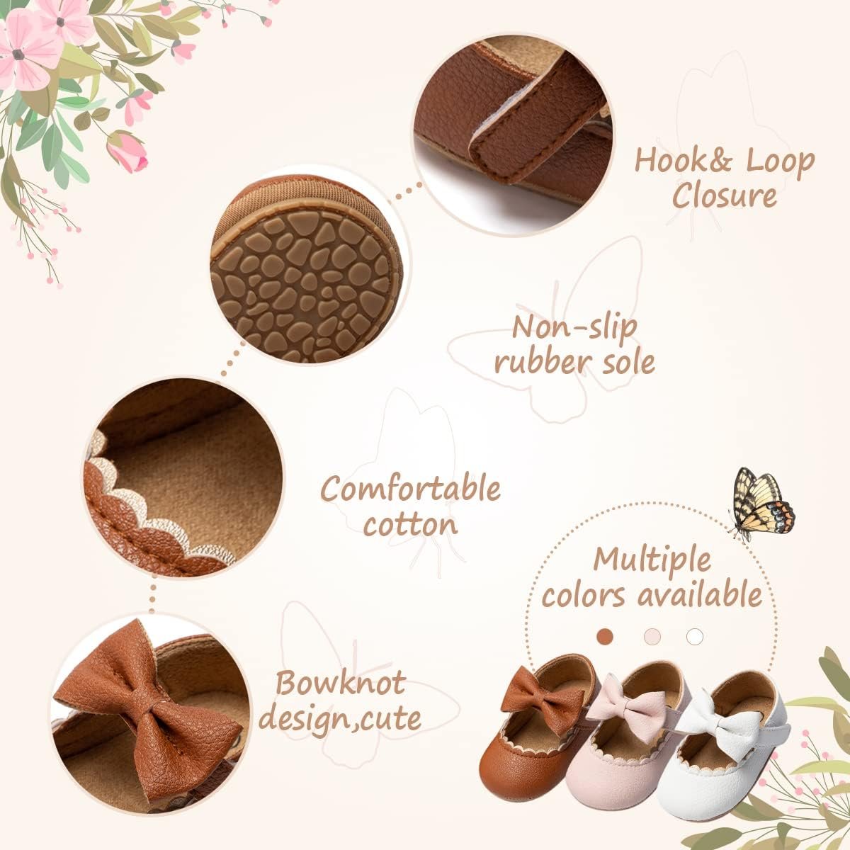 Customers find these baby shoes super cute and comfortable, with nice thick quality and easy slip-on design. The fit and size receive mixed feedback – while some say they’re perfect for chubby feet and 7-month-olds, others note they run wide and aren’t true to size. Durability is also mixed, with some finding them durable while others report the bows breaking within a week. The color receives mixed reactions, with customers appreciating the vibrant hues.
