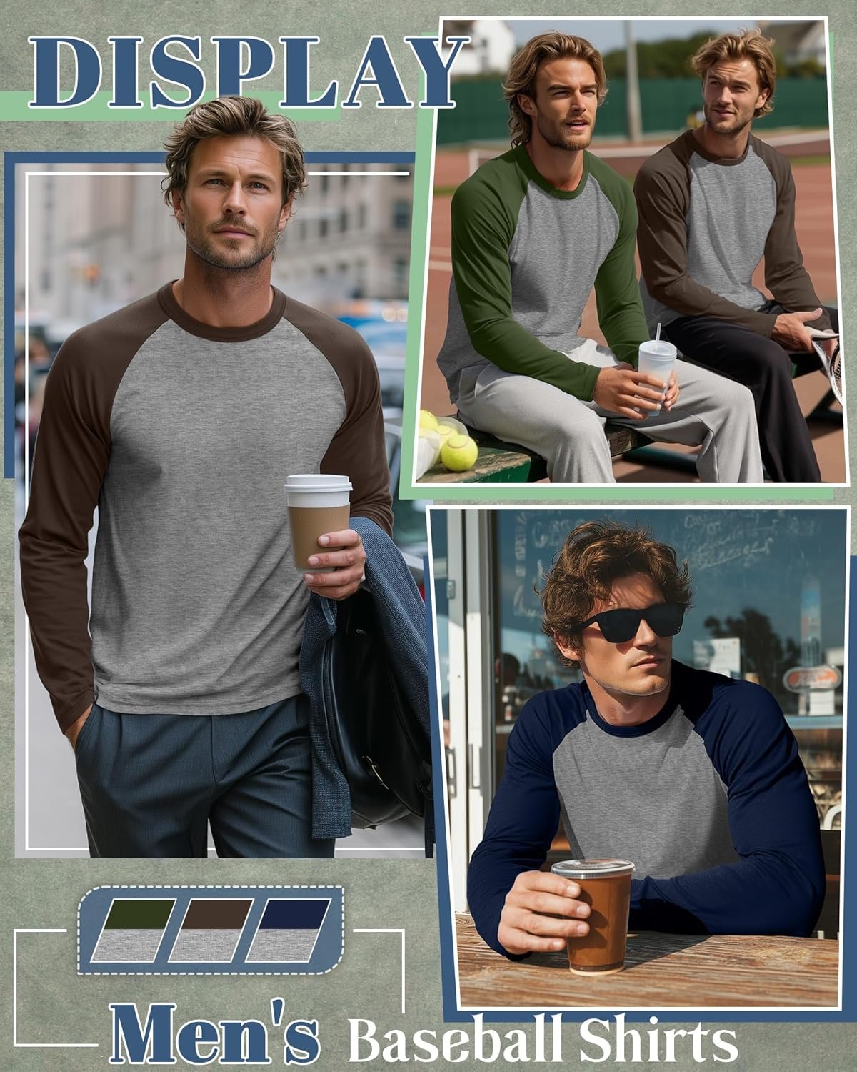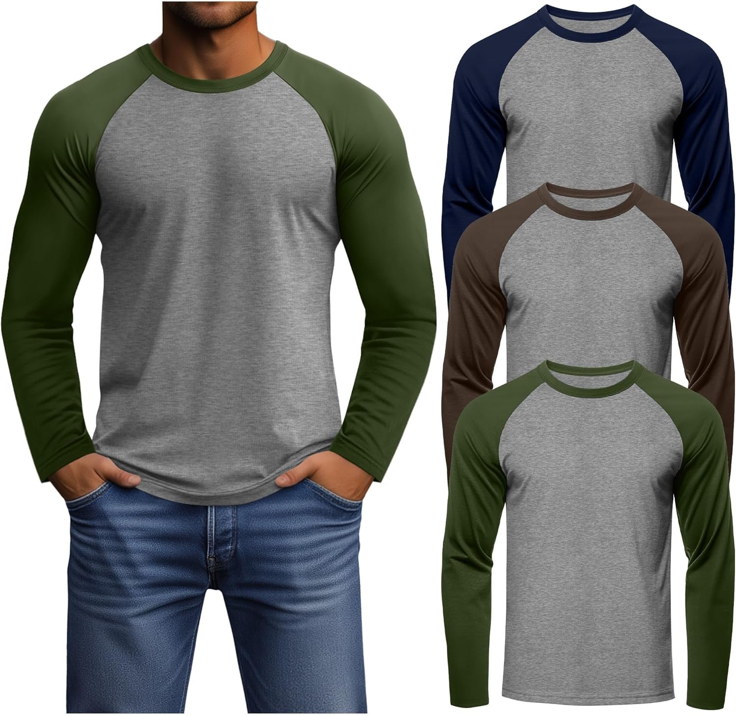 Package includes: 3 x men’s long sleeve baseball shirts