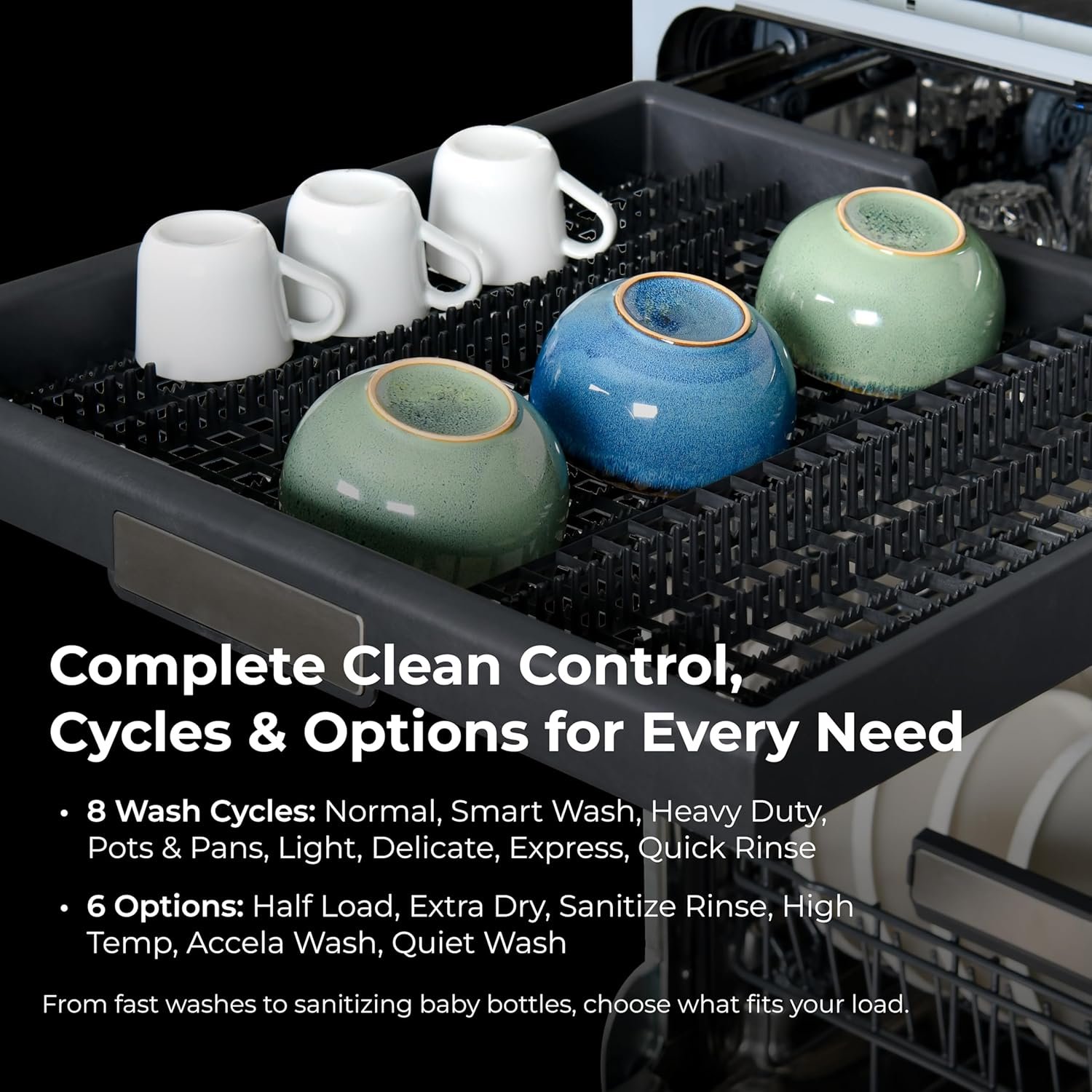 SmartWash Adjusts to the Mess: Sensor technology detects soil levels and automatically adjusts the water temperature, pressure, and cycle time. A dishwasher that gives the best clean for every load