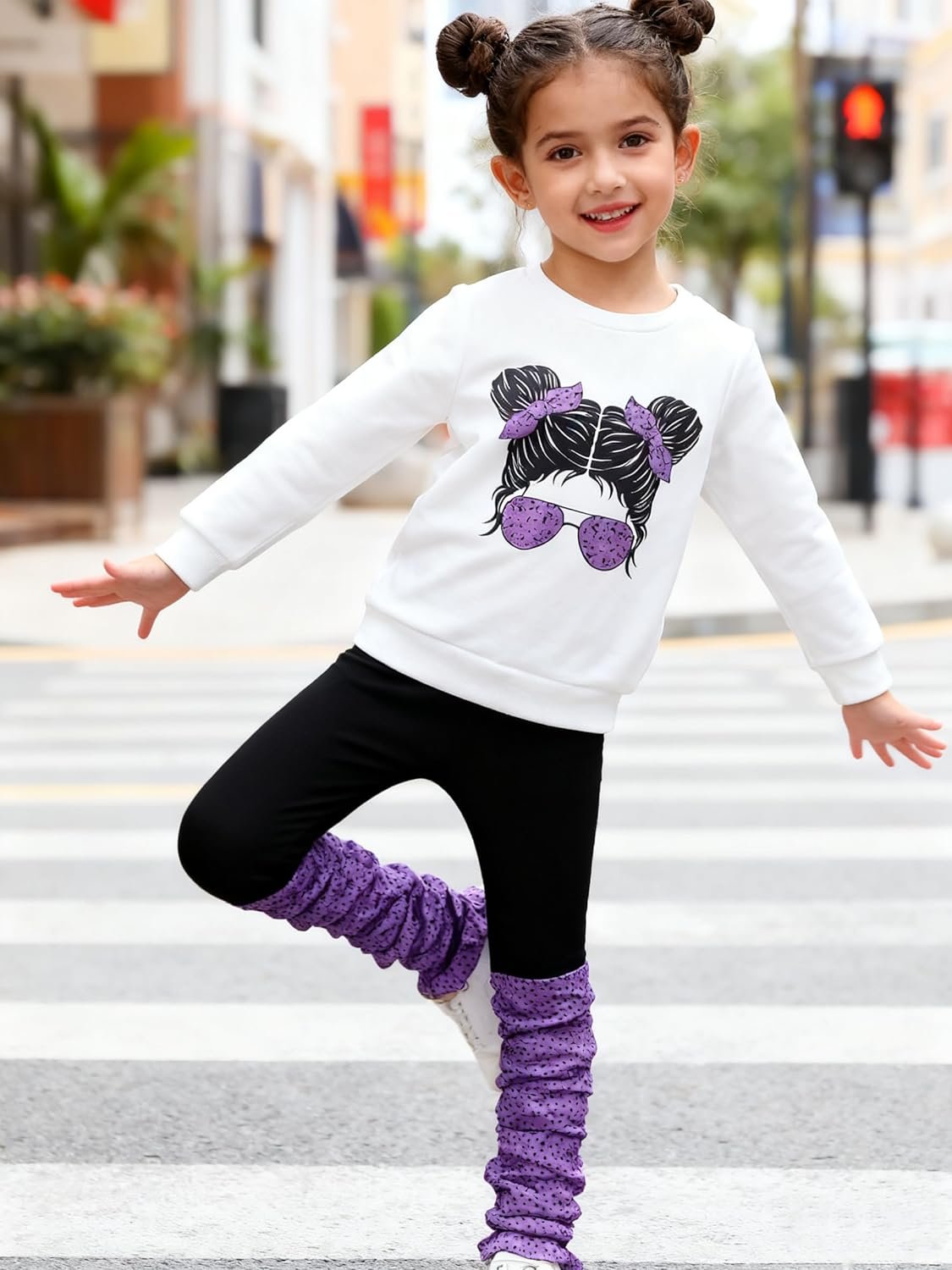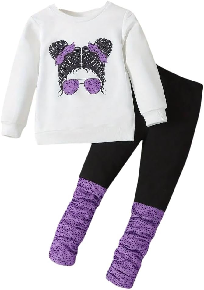 Kids Toddler Girls Clothes Figure Graphic Drop Shoulder Top Pullover Spotted Print Pants Fall Winter Outfit Set