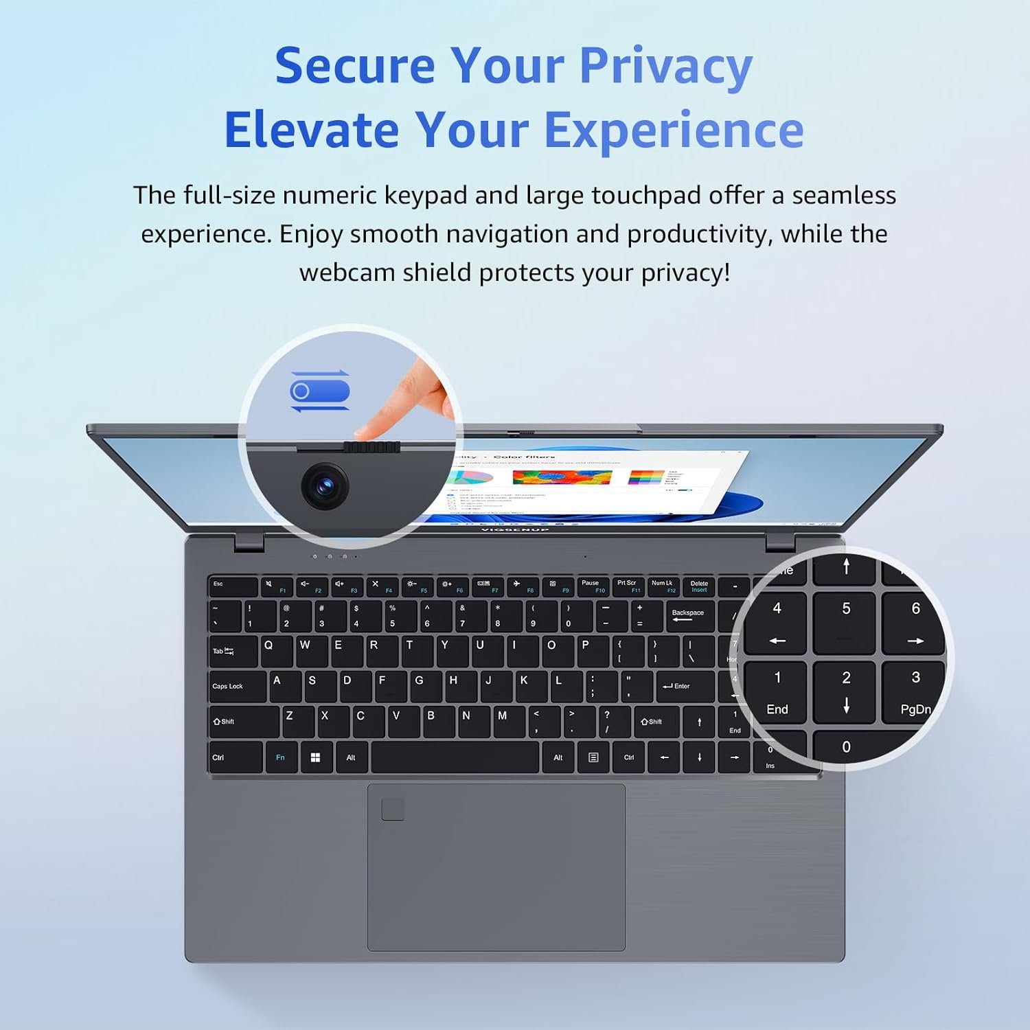 Laptop, 12GB LPDDR5 RAM 1TB SSD, 15.6 Inch Laptop Computer, N95 Quad Core Processor(Beat to N5095,6500Y), Up to 3.4GHz, WiFi 5, BT 5.0, USB-C, Fingerprint,Gray