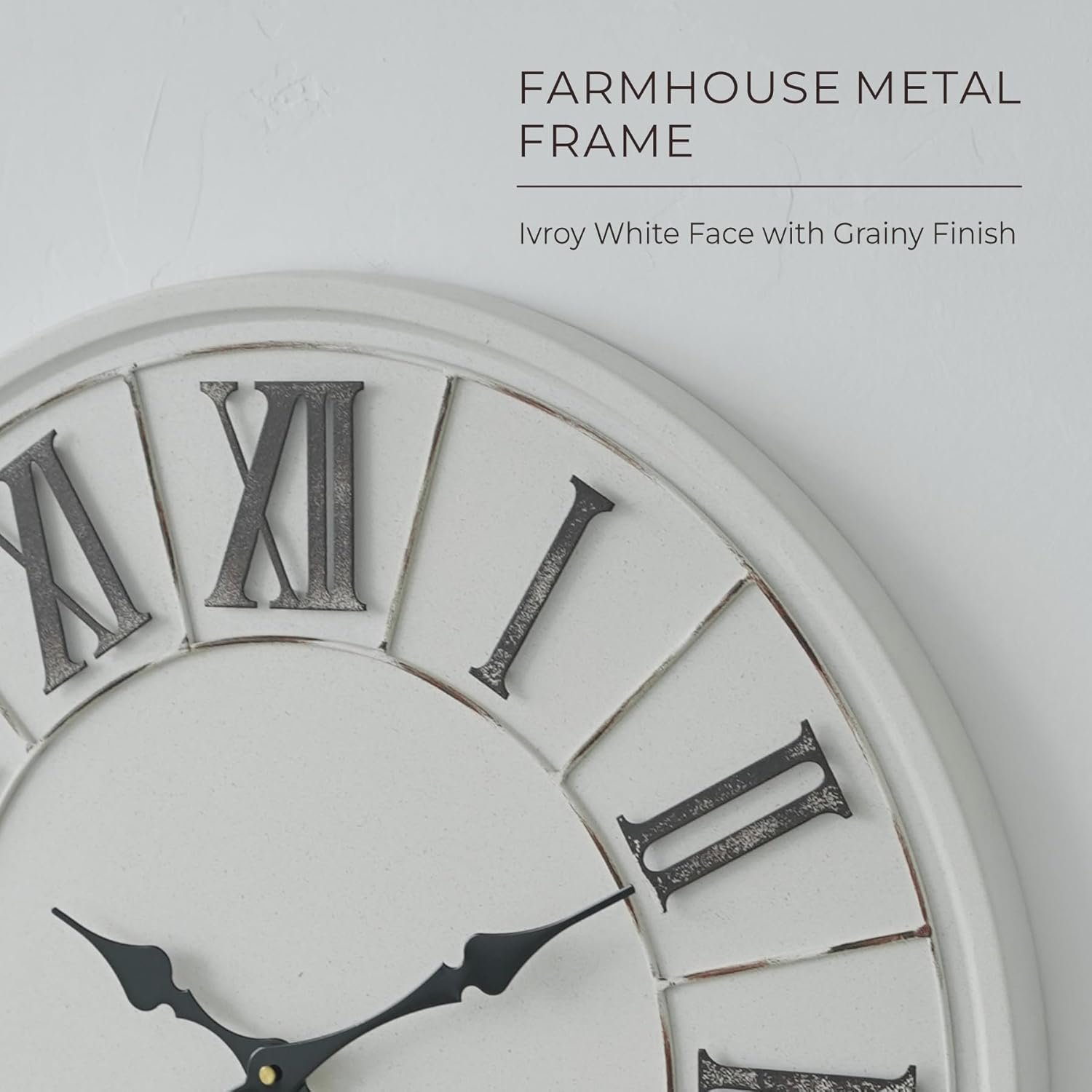 Large Farmhouse Wall Clock – 24 inch, Rustic White, Distressed Roman Numeral, Metal Face, Battery Operated, Modern Farmhouse Decorative Wall Clock for Living Room Decor