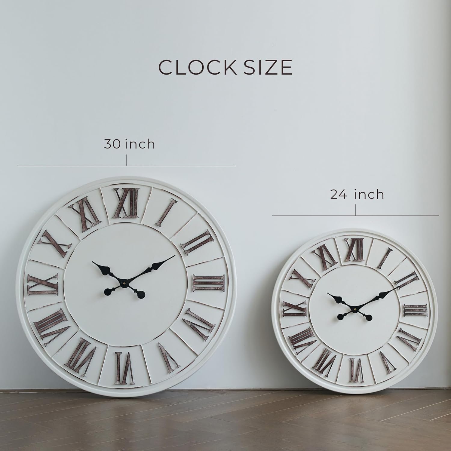 Be the first to review “Large Farmhouse Wall Clock – 24 inch, Rustic White, Distressed Roman Numeral, Metal Face, Battery Operated, Modern Farmhouse Decorative Wall Clock for Living Room Decor”