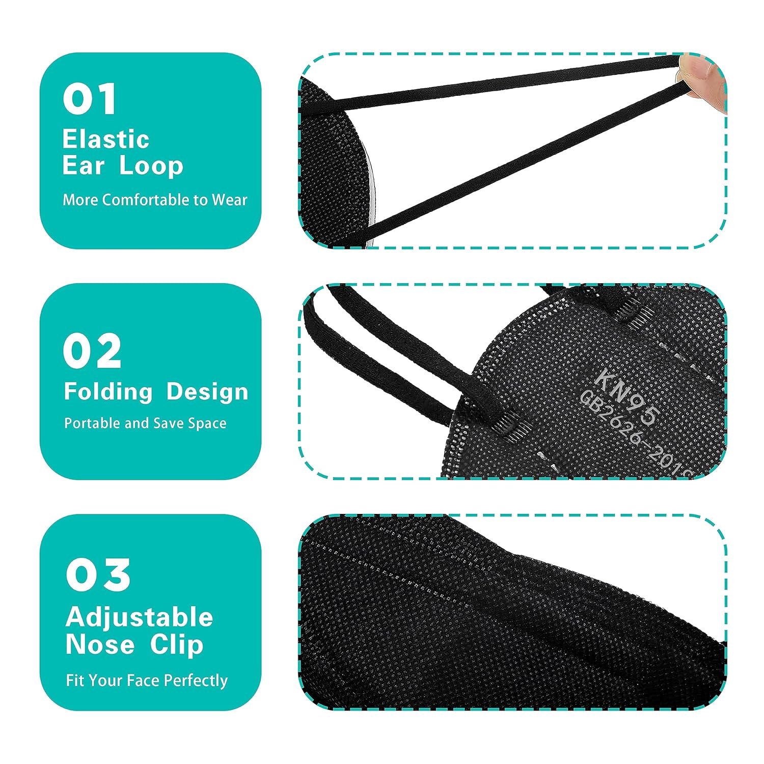 Designed according to the human face shape to ensure the tightness and safety, with the soft elastic stretchable ear loop.