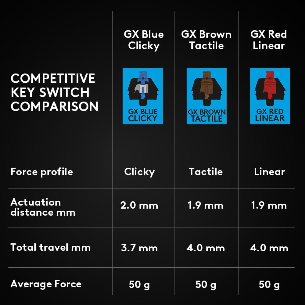 Durable GX Blue Click switches deliver an audible and tactile click for a solid, secure keypress.