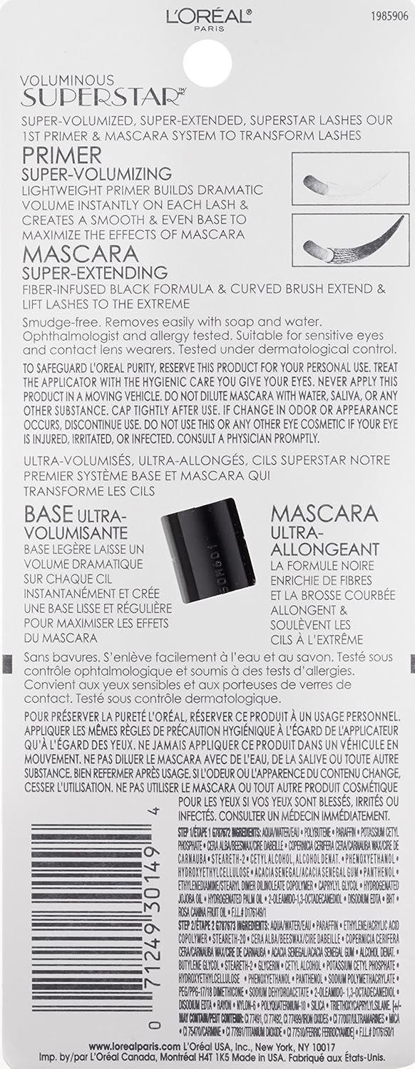Voluminous Primer And Mascara: Super-volumizing mascara primer builds dramatic volume on every lash and creates an ultra-smooth base to maximize mascara performance; Super-extending mascara with a fiber-rich black formula