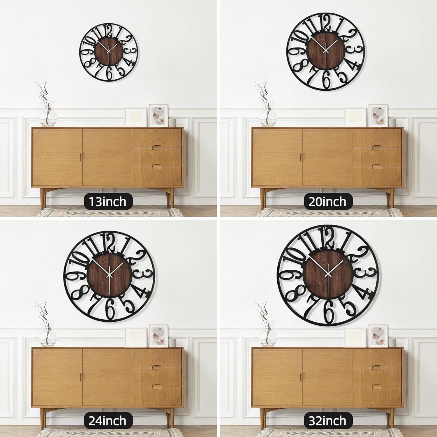 Wall clock have 4 different size:13in 20 in 24in 32in