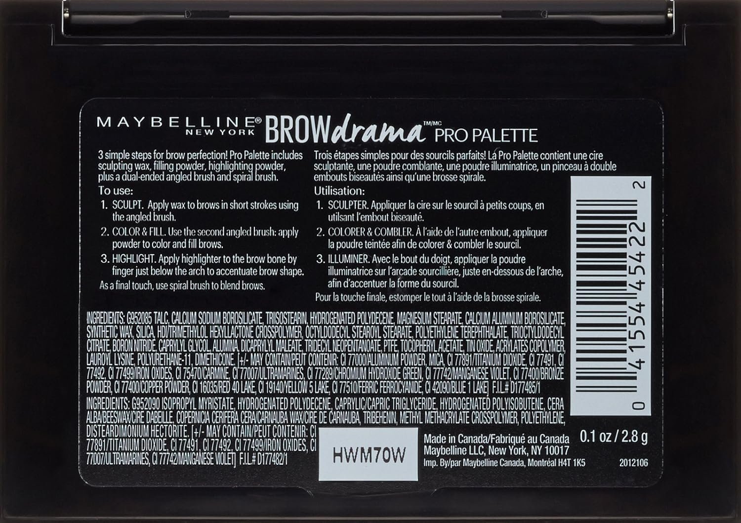 Maybelline New York Brow Drama Pro Eyebrow Palette, Soft Brown, 0.1 oz.