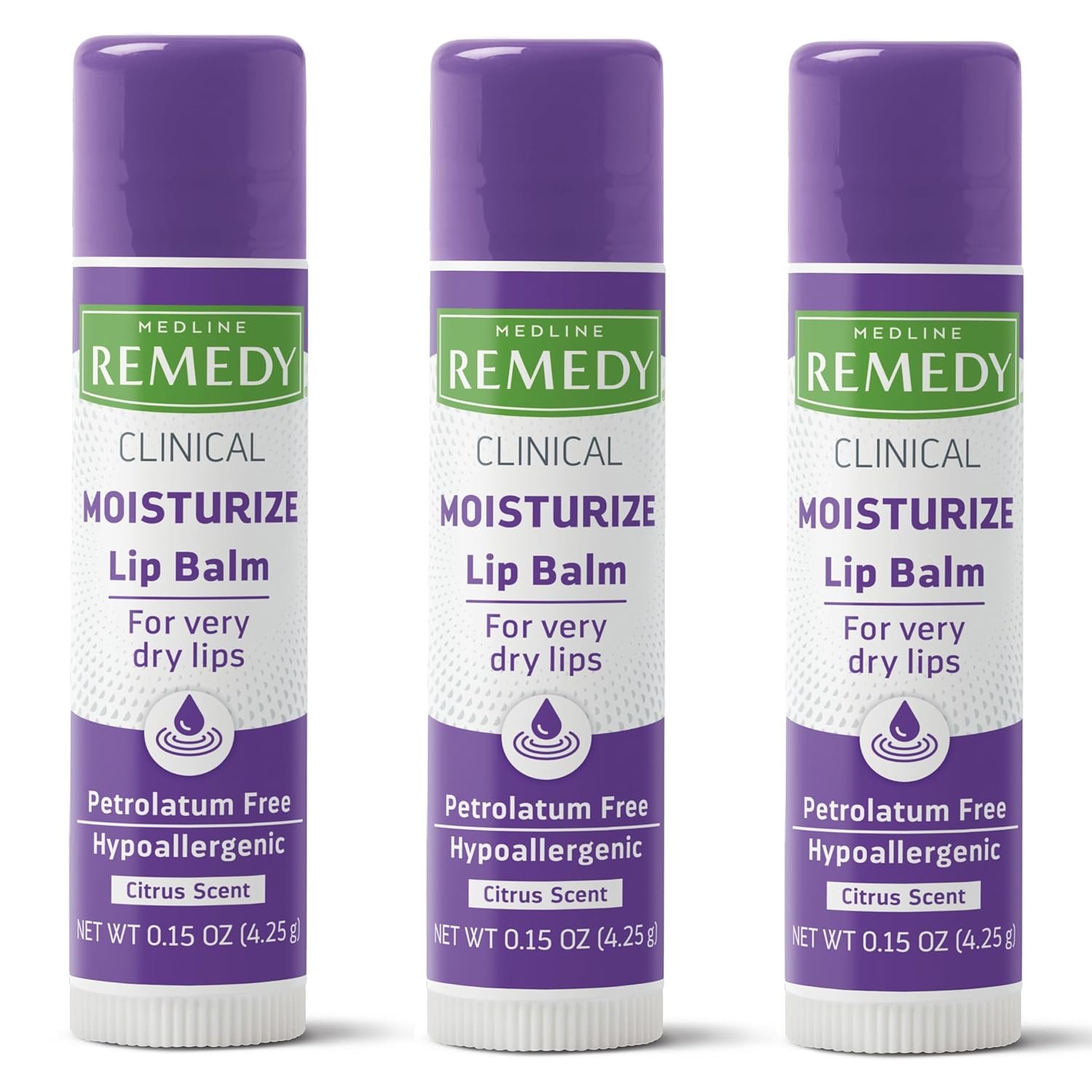 Medline Remedy Clinical Lip Balm, 3 Count, Citrus Scent, Moisturizing, Hydrating, Nourish, Nutrient Rich, Soothing Natural Oils, Revitalize, Comforting, Skin Conditioners, 0.15 oz Stick