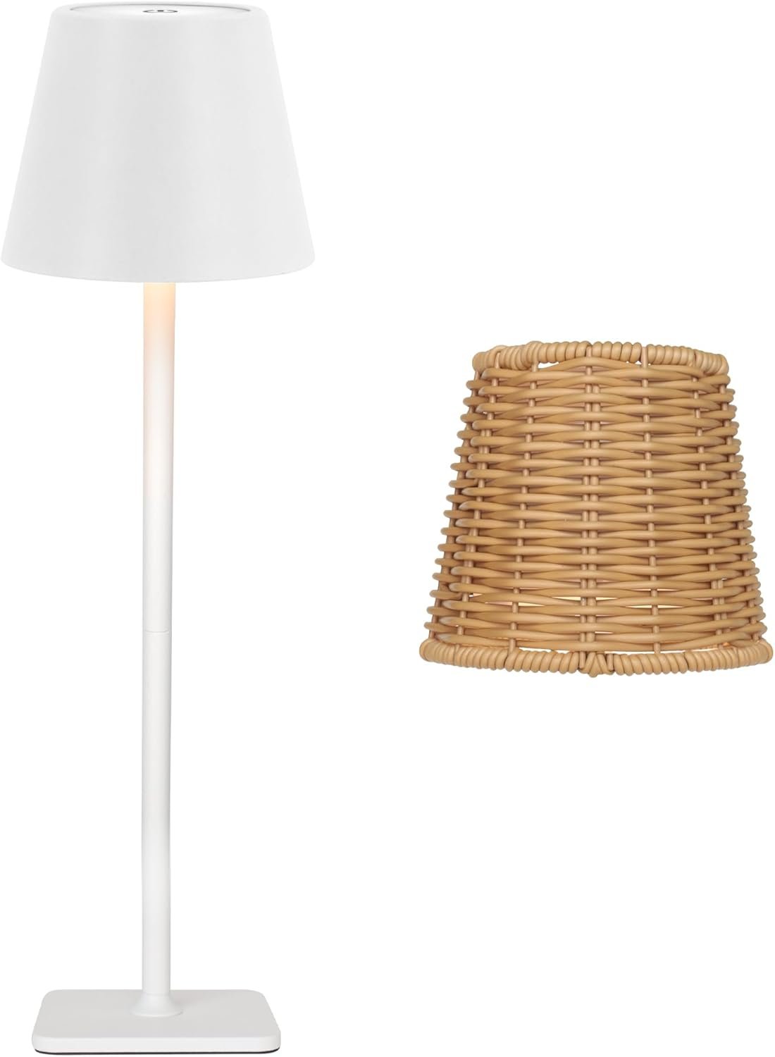【Versatile Design with Two Lampshades】This LED table lamp rechargeable comes with two stylish lampshades—one made of iron and the other handcrafted woven. The adjustable connecting rod allows you to customize its height, measuring 9.4 inches with one rod and up to 14.7 inches with two, enhancing the decor effect in any environment.
