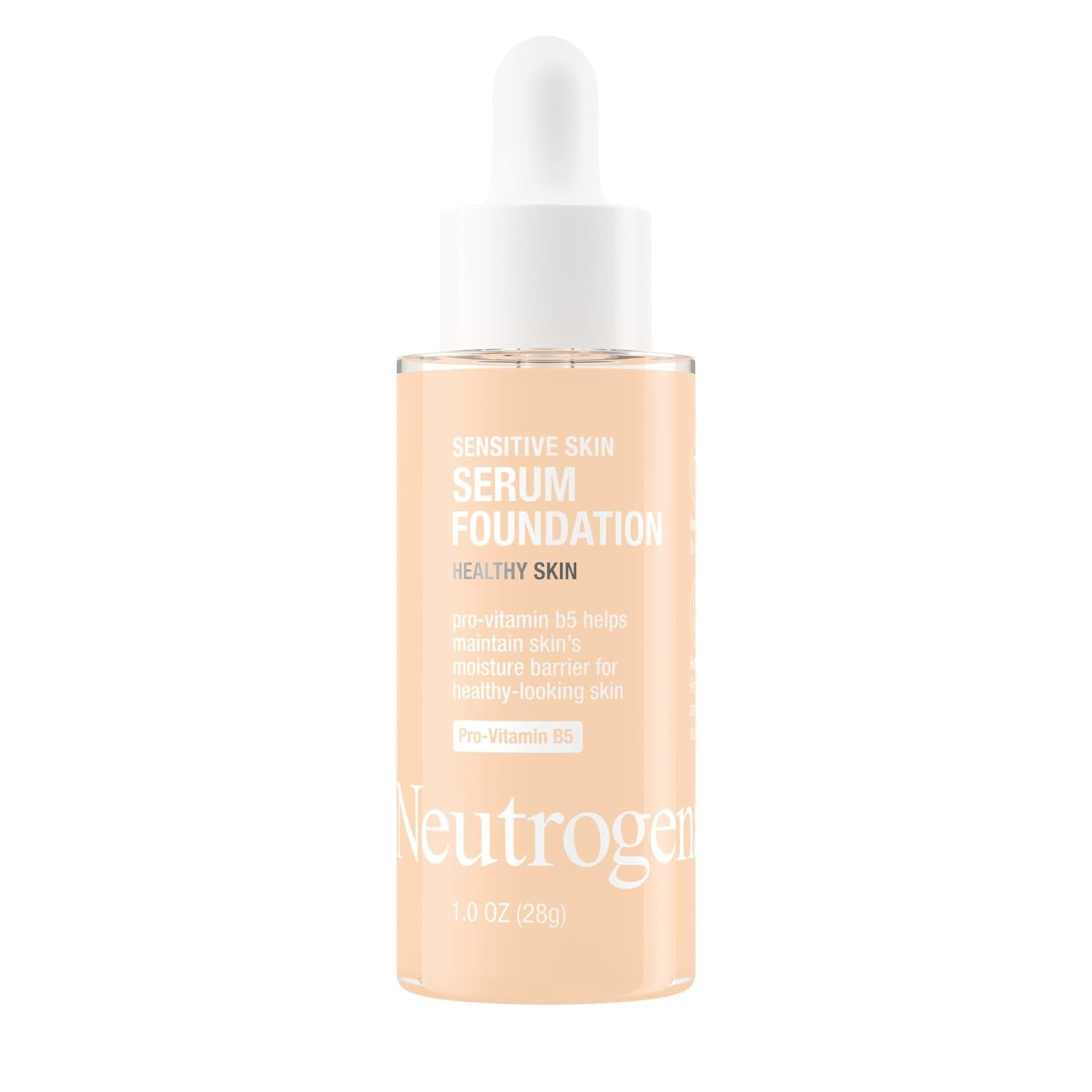 Improve the look of skin with Neutrogena Healthy Skin Sensitive Skin Serum Foundation. Suitable for sensitive skin, this serum-infused foundation doubles as skincare and makeup that provides sheer, natural, and buildable coverage while blurring imperfections, the look of pores, and designed to minimize the look of fine lines. Formulated with Pro-Vitamin B5, a dermatologist-recognized ingredient known to help maintain skin’s moisture barrier, the color-correcting, healthy glow liquid foundation goes on smoothly leaving skin soothed while visibly reducing redness. Available in a range of natural-looking shades, the light coverage foundation from a dermatologist-recommended brand is non-comedogenic and fragrance-free, dye-free, paraben-free, phthalate-free, alcohol-free, and sulfate-free. To use foundation to reduce the look of pores, gently shake the bottle, then use clean fingers, sponge, or foundation brush to apply makeup as part of your daily skincare and beauty routine.