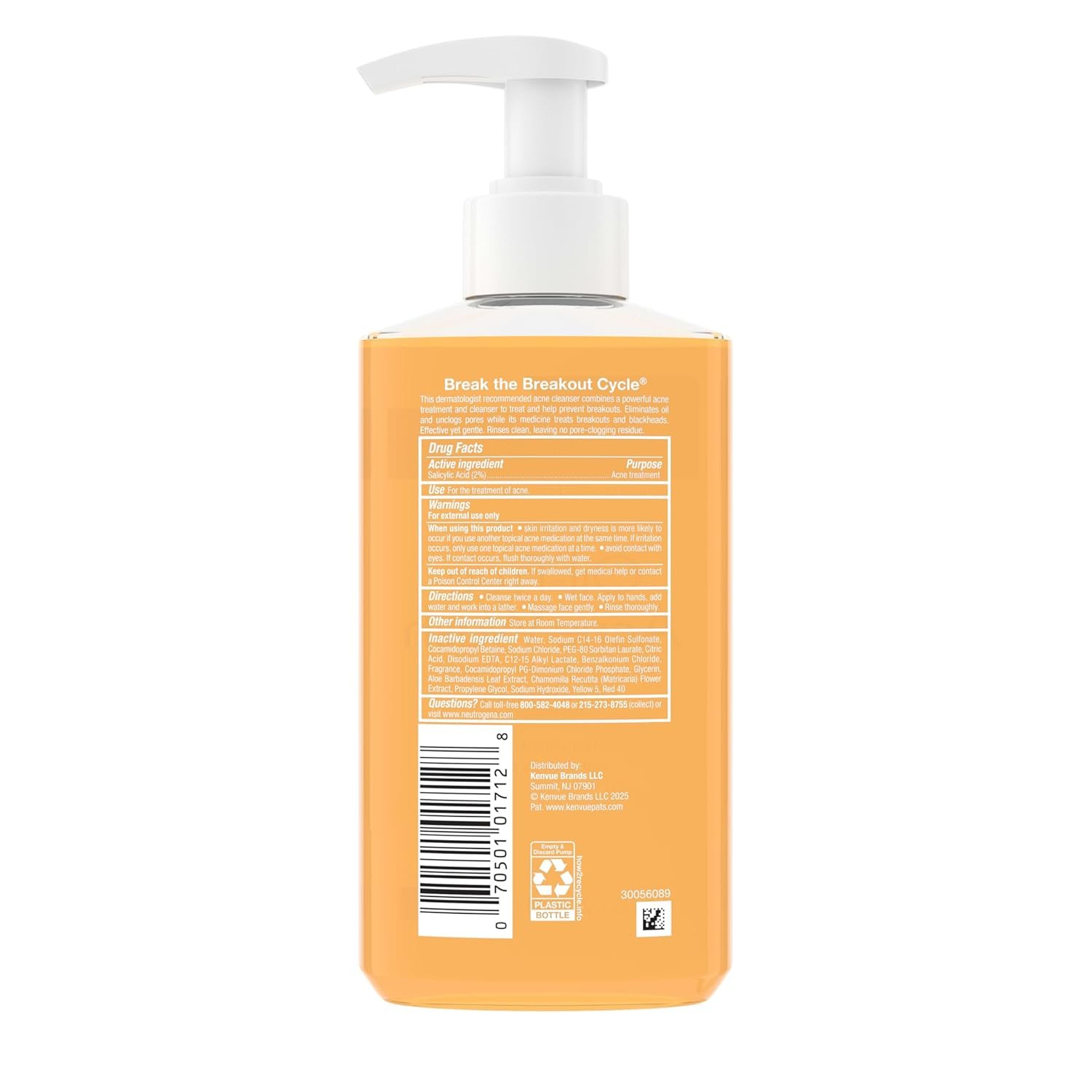 Neutrogena Oil-Free Acne Face Wash, Breakout Prone Skin Facial Cleanser with 2% Salicylic Acid Acne Treatment for Face, 9.1 fl. oz