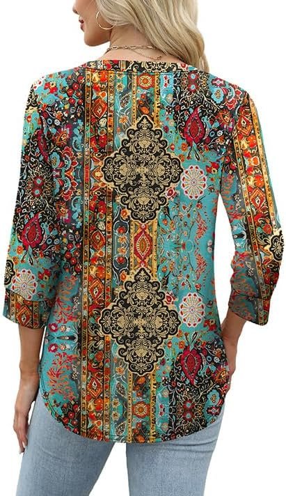 The video showcases the product in use.The video guides you through product setup.The video compares multiple products.The video shows the product being unpacked. Womens Tops 3/4 Sleeve Merchant Video